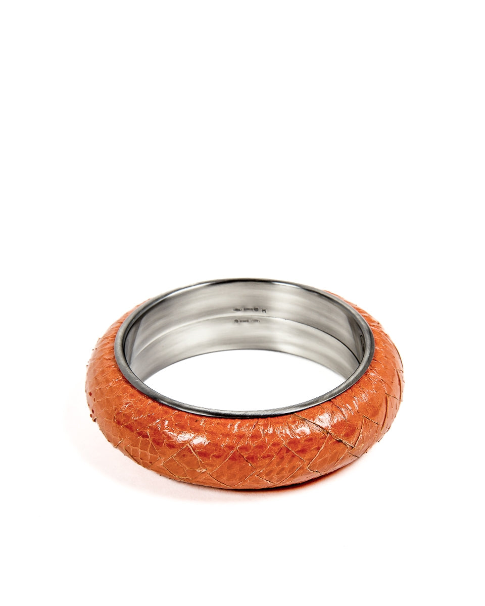 By: Bottega Veneta - Detail: 130220 V0FH3 7611 - Colour: Orange - Composition: 50% SILVER + 50% SNAKE LEATHER - Measures: - Made: ITALY
