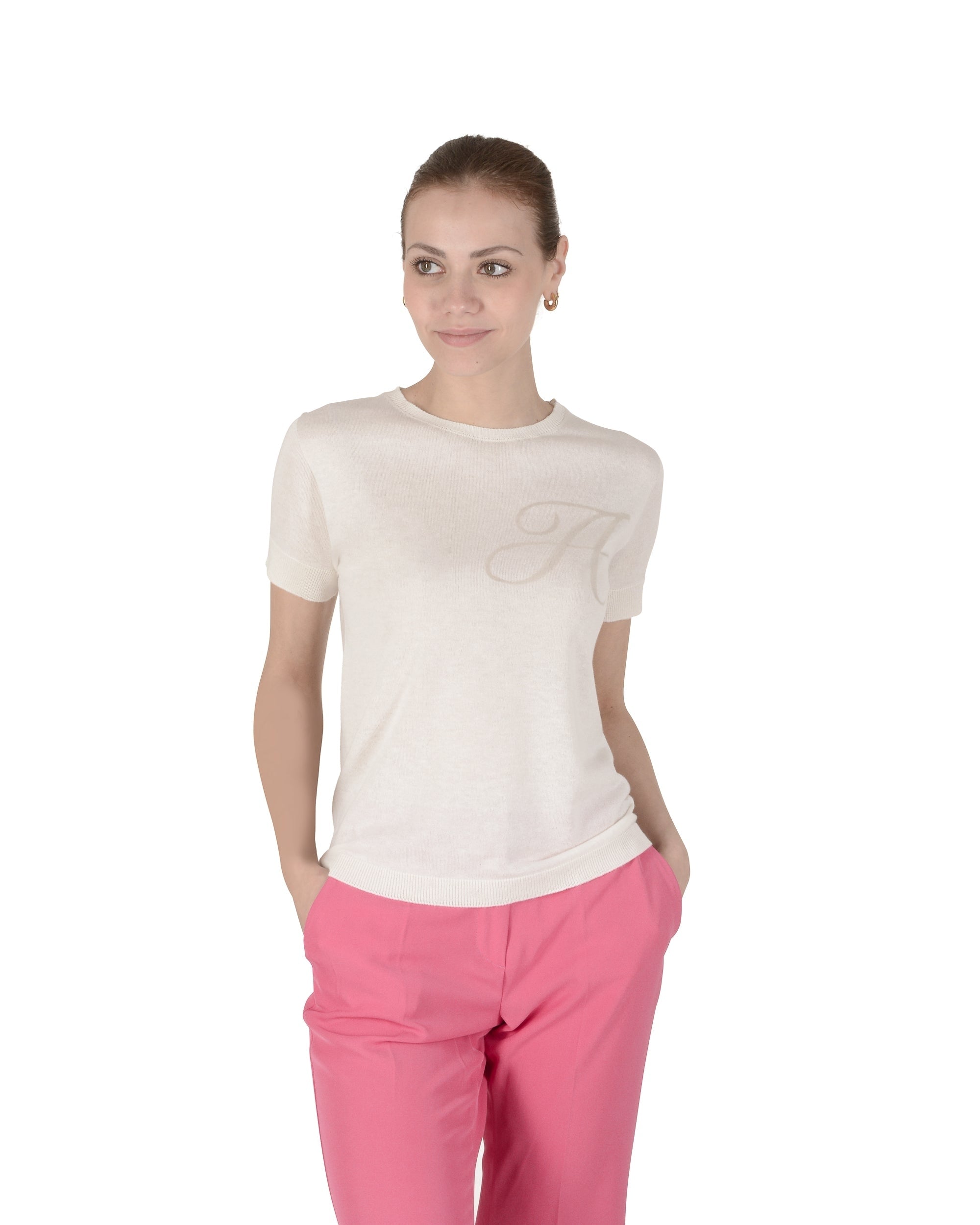 Crown of Edinburgh Cashmere Short Sleeve ART 003 IVORY LETTER A