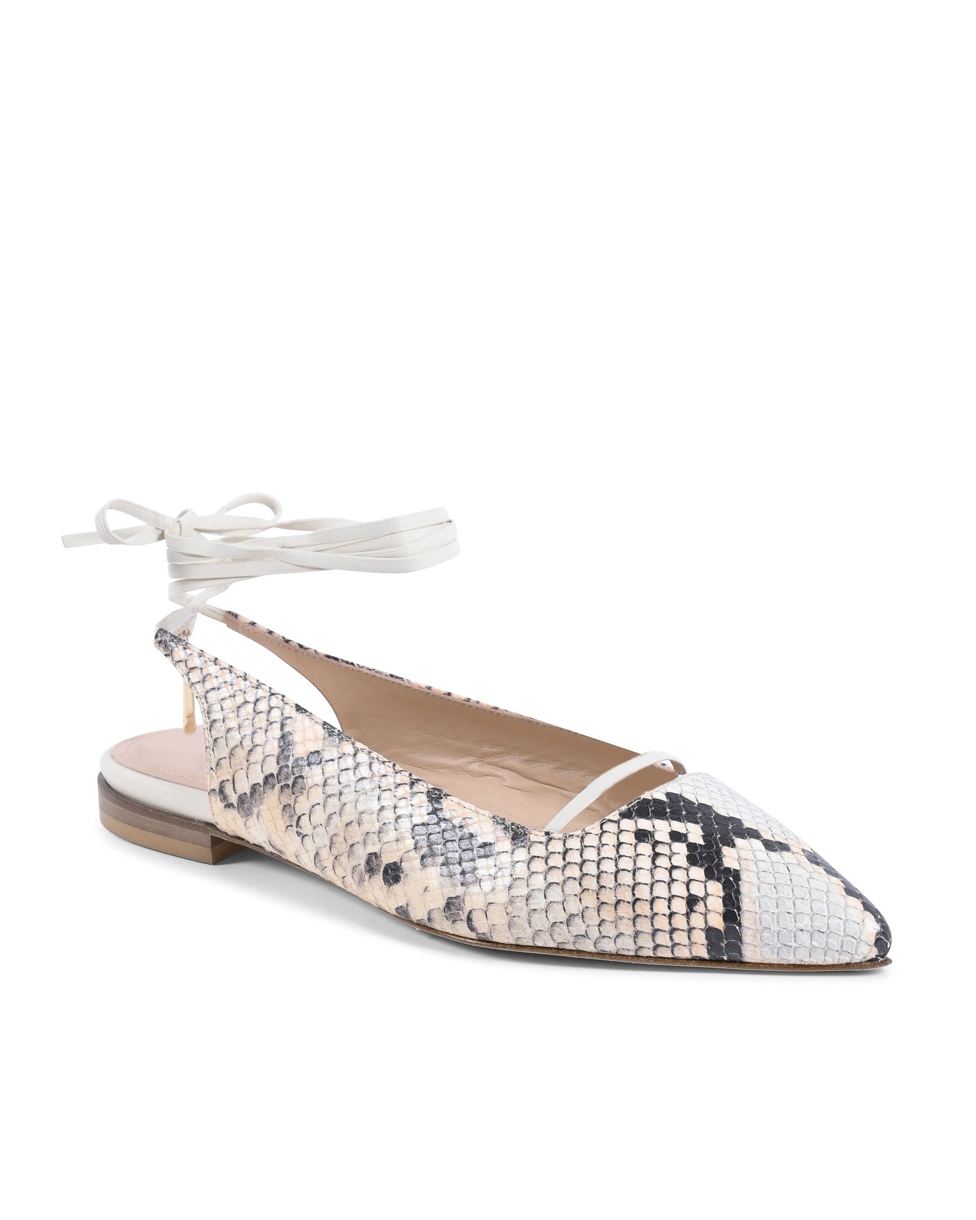 Made in Italy by the best Italian craftsmen, this pointed toe slingback with slave laces lined in genuine leather with a low 1 cm heel is absolutely suitable to accompany your days in total comfort, but also with that extra touch of colored printed python .
