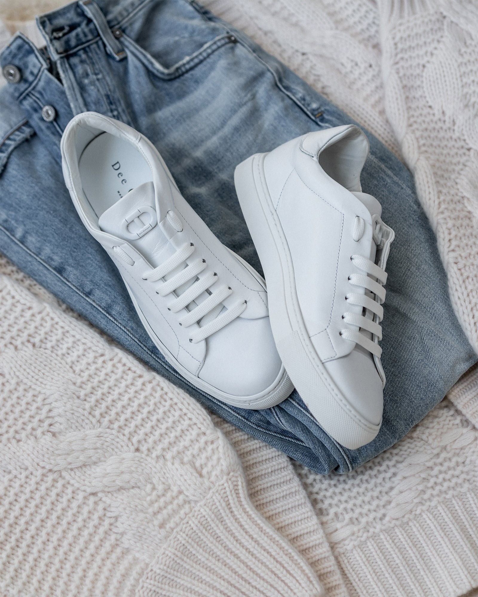 The clean and sleek Dee Dedication sneaker has been released in an exclusive colorway this summer. Made in Italy from 100 % leather, they come in a tone-on-tone white with dyed-to-match rubber outsoles and a tone- on-tone logo. Wear with your favourite jeans.