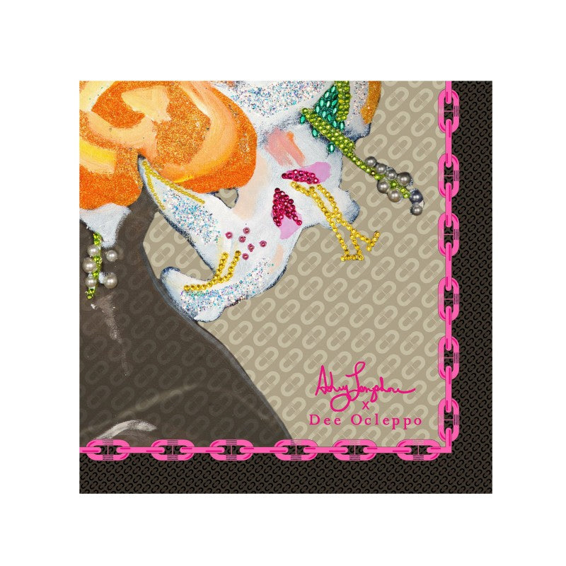 These scarves mark the first collaboration between Dee and longtime friend, artist Ashley Longshore.