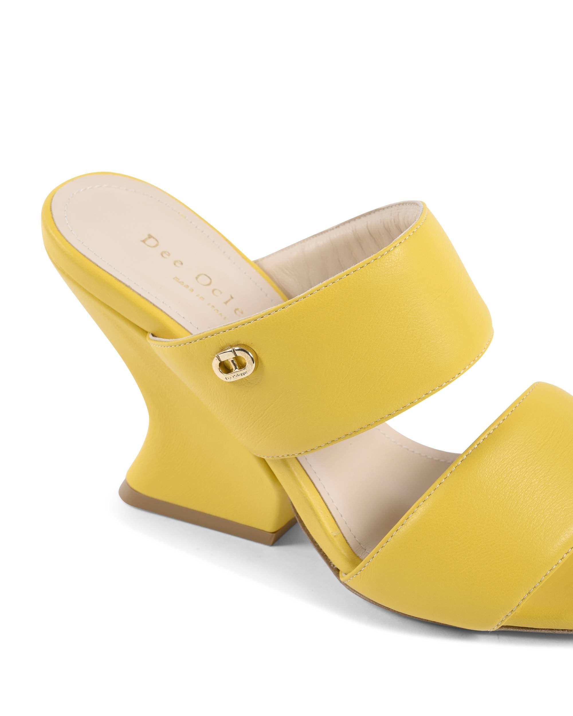 This yellow square-toed pair is made from nappa leather, and they sit atop 100mm curved signature wedge heels.