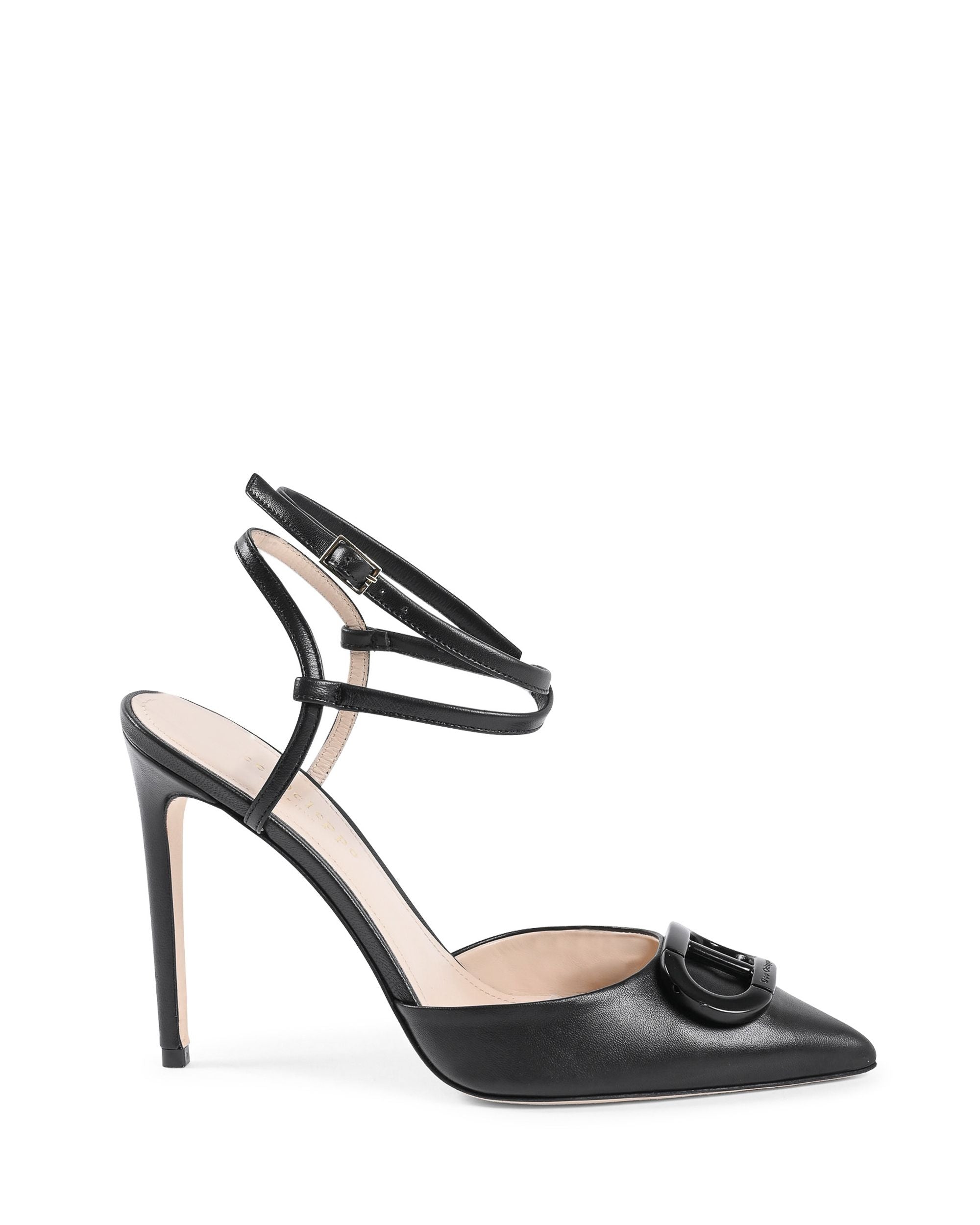 Poised for nights out in our black leather pump, this is a shoe shape familiar to fans of the brand: the stiletto heels, tone on tone Dee logo and pointed toes. Opt for mini and midi hemlines to best accentuate the lace-up ankle ties.