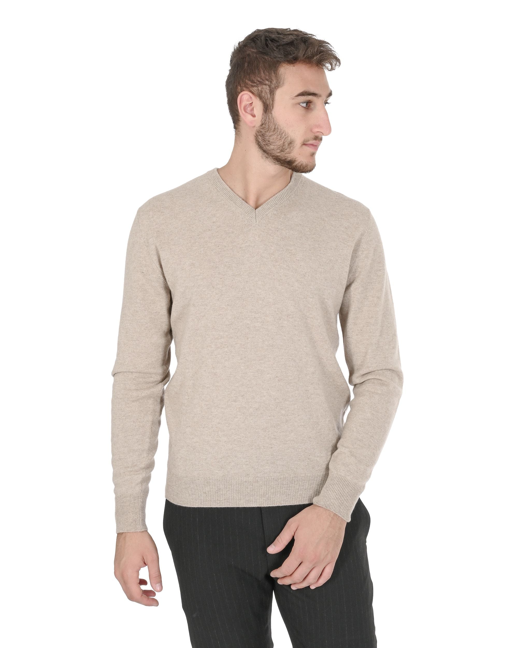 Crown of Edinburgh Cashmere Mens V Neck Sweater COE 0012 BEIGE