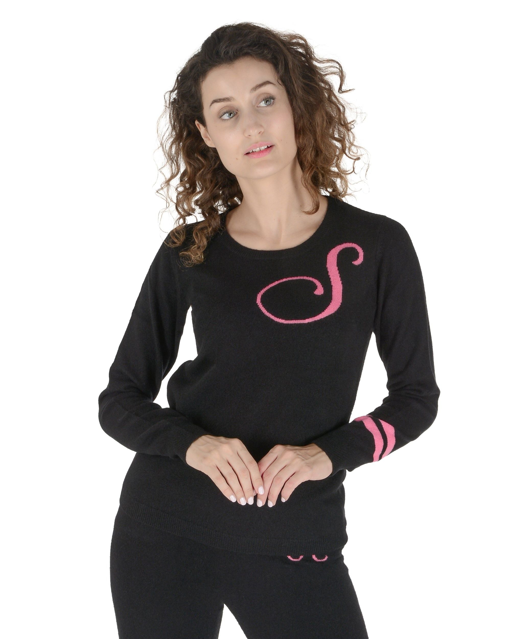 This 12 gauge knit cashmere long sleeve crew neck jumper is a stylish treat for you or a special gift for someone in your life. This classic sweater, inspired by Laverne's oversized monogram sweater from Laverne & Shirley, is styled with a contrasting letter on the front and three contrasting stripes on the sleeve, and is made using premium quality cashmere offering unbeatable softness natural warmth. Style yours with our cashmere track pants for a a playful take on the weekend or team with your favourite jeans for a cover-up that can be dressed up or down. Choose your Letter from: A-D-K-L-M-S. 100% Cashmere made in Mongolia Dry Clean/Hand wash cool