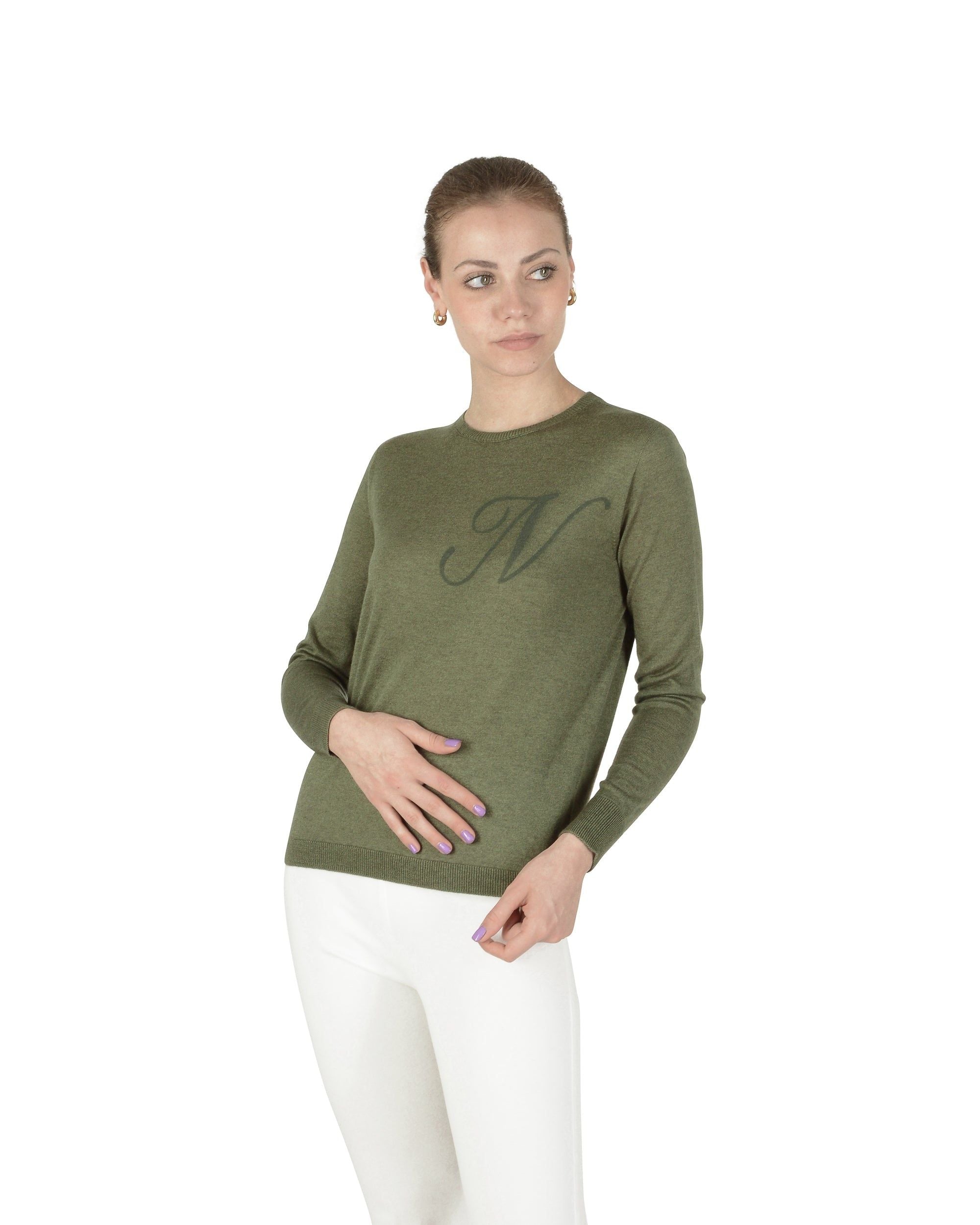 Crown of Edinburgh Cashmere Long Sleeve ART 004 GREEN LETTER N