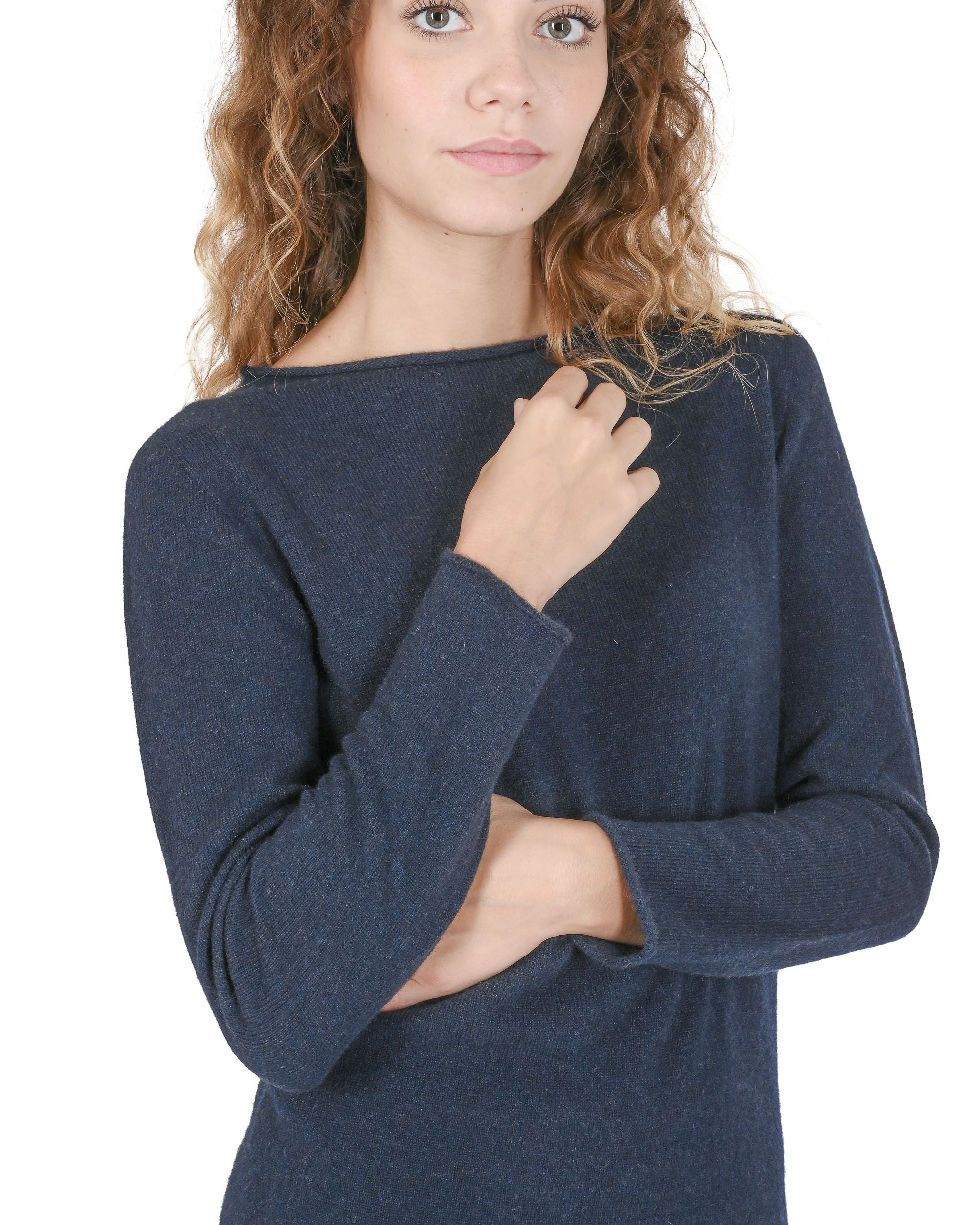 Crown of Edinburgh Cashmere Womens Boat Neck Sweater COE 0025 NAVY BLUE