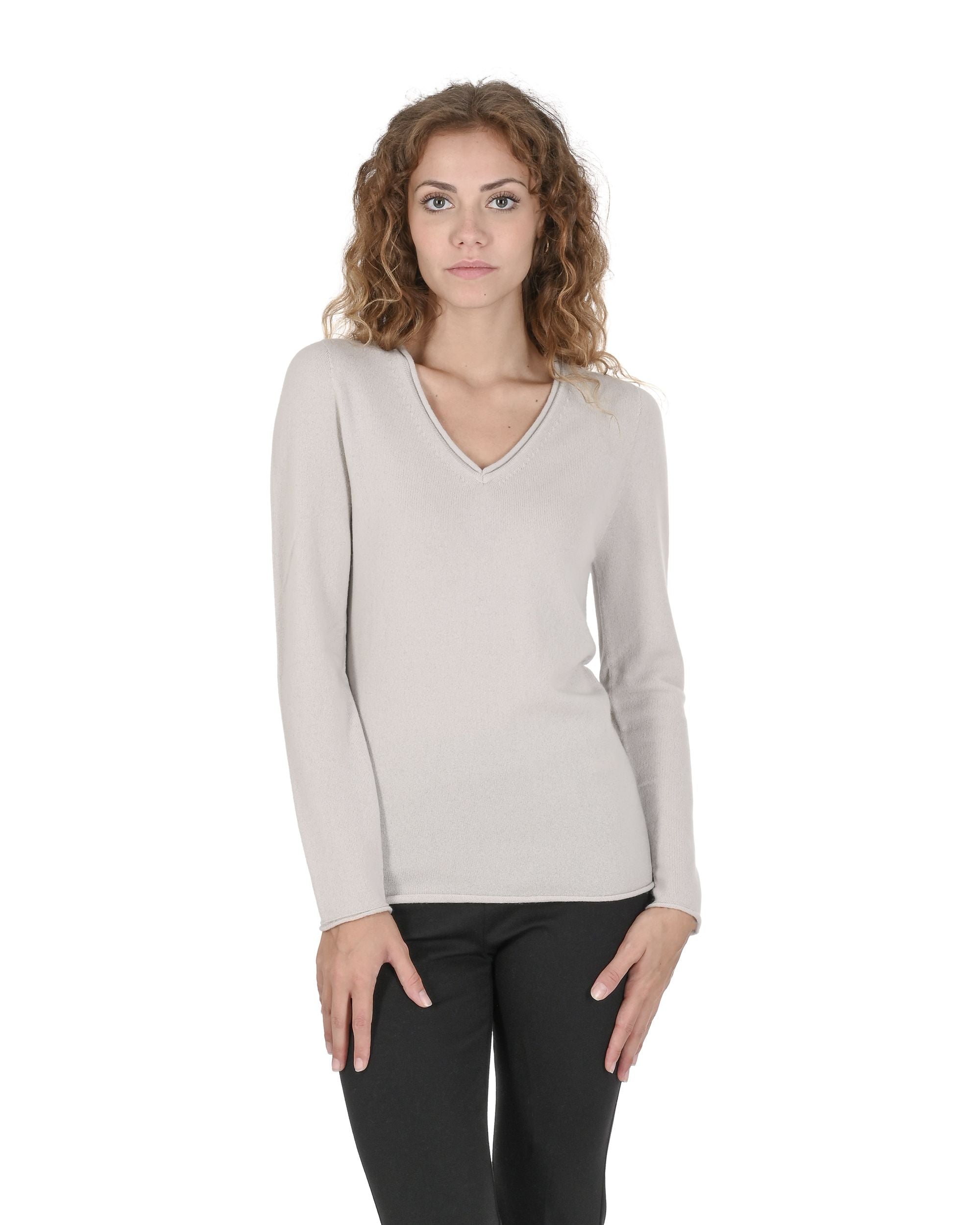 Crown of Edinburgh Cashmere Womens V Neck Sweater COE 0022 OYSTER