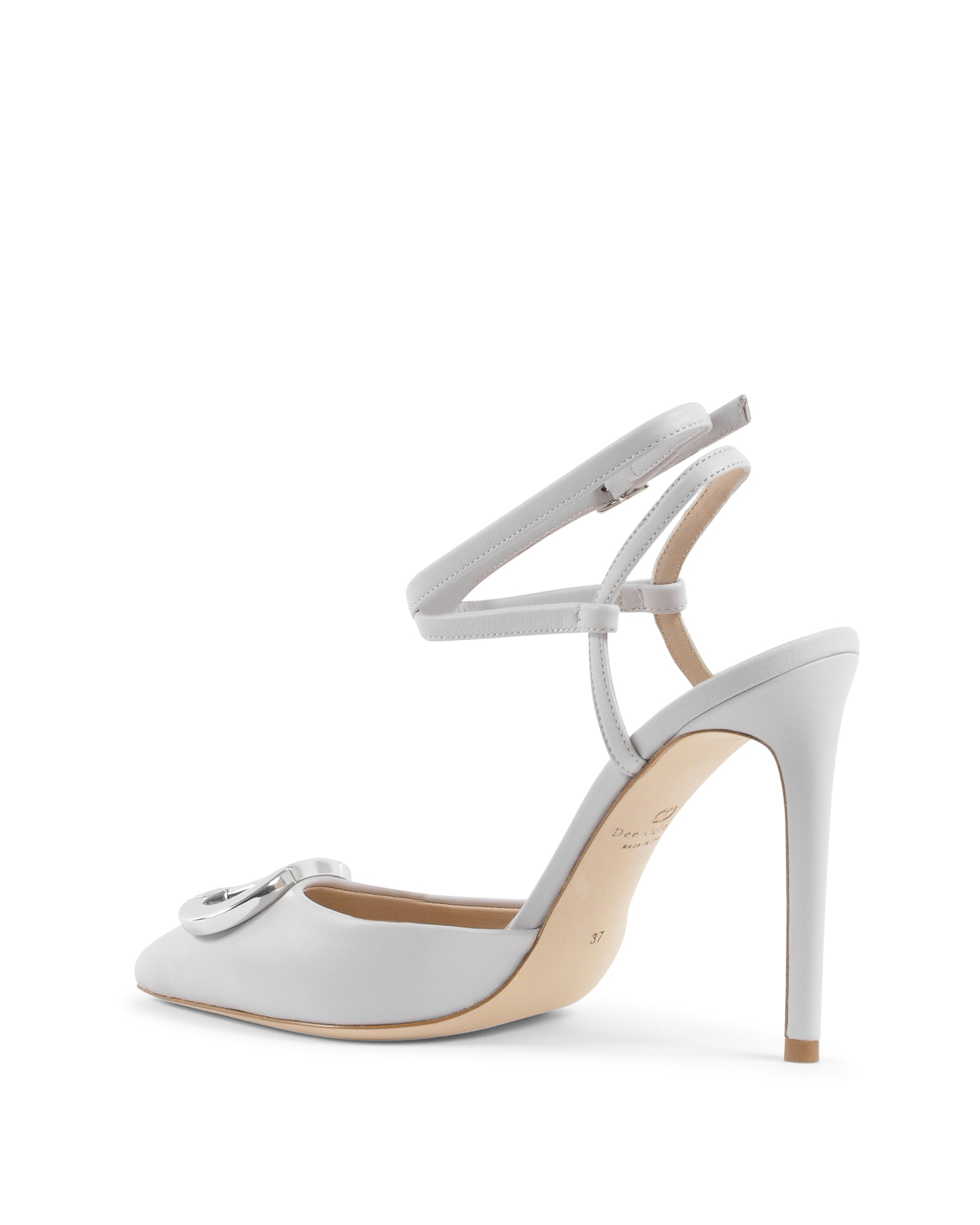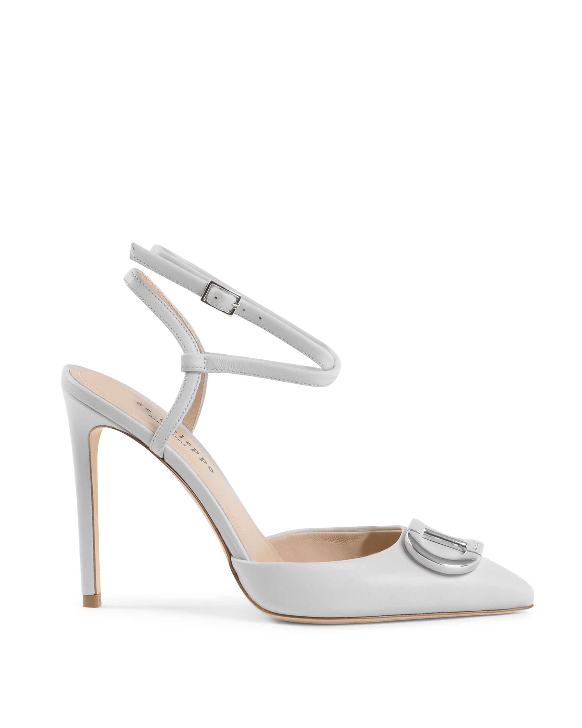 Poised for nights out in our blue satin pump, this is a shoe shape familiar to fans of the brand: the stiletto heels, tone on tone Dee logo and pointed toes. Opt for mini and midi hemlines to best accentuate the lace-up ankle ties