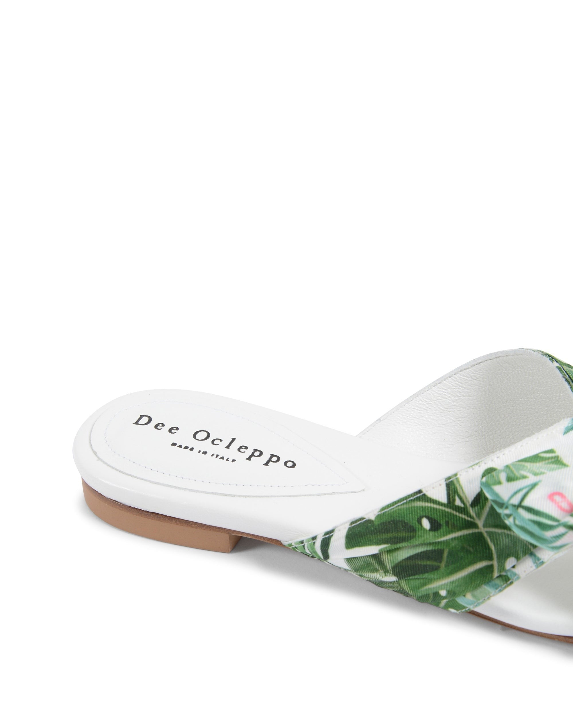 This mule made of silk with a printed bow and flat sole is ideal for a comfortable and comfortable summer day full of joy and fun. Made in Italy 100%