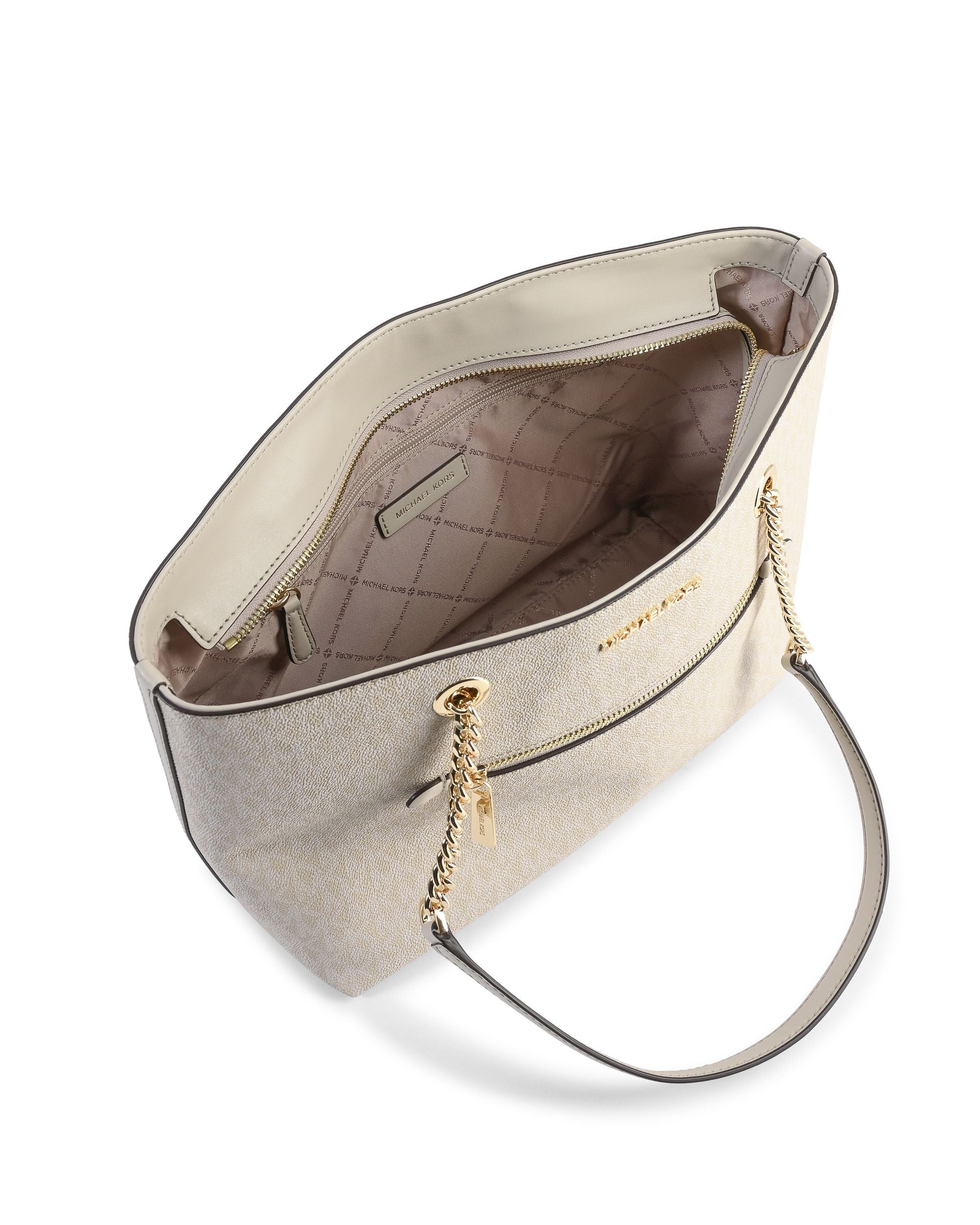 Michael Kors Medium fornt zip Chain Tote Bag 35R3GTTT2V LIGHT SAND