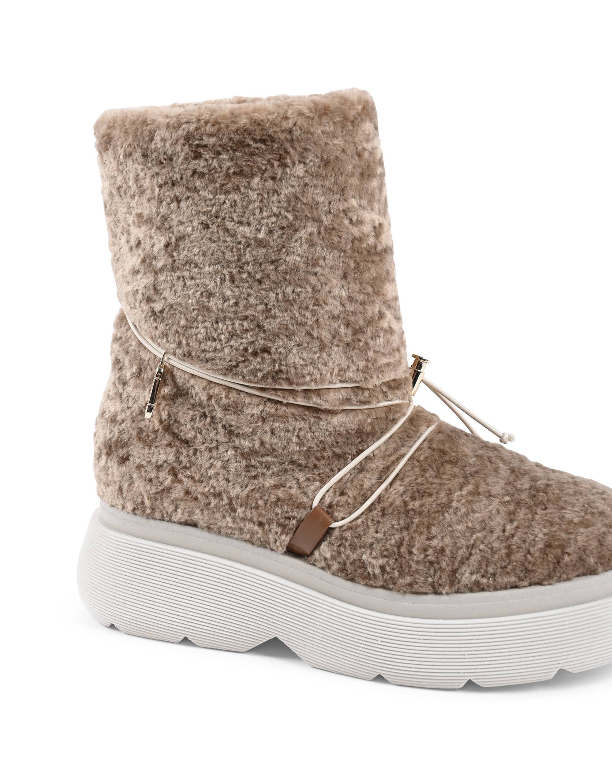 This modern take on the classic snow boot is our Dana Teddy ankle boot. Made with faux-shearling and set on grooved 5cm rubber platform soles. This boot is easily tightened by using the elastic drawstring.