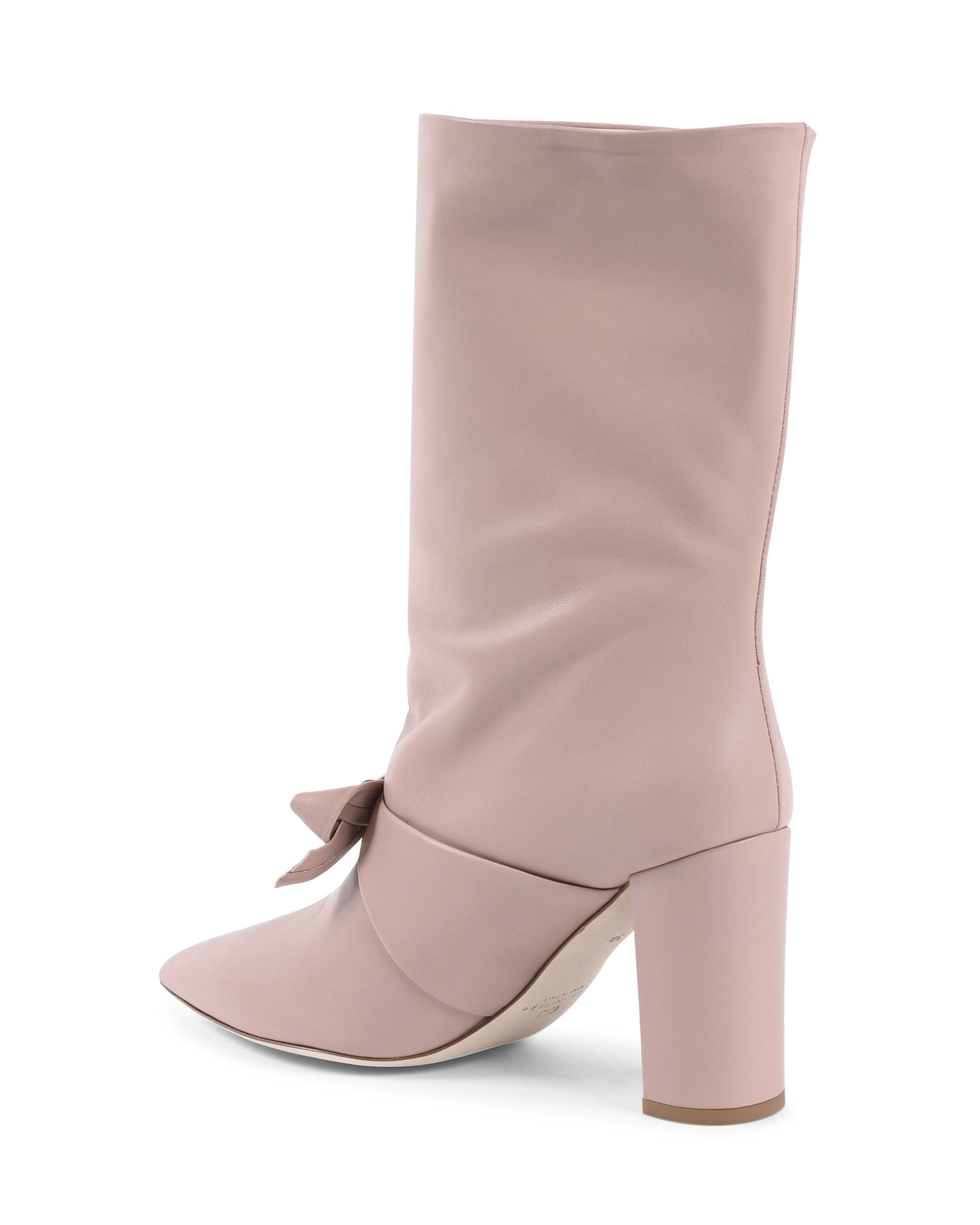 The Dominic boot flatters the foot with a pointed toe and a stylish bow on the front which is low-key, and simply chic. This tubular boot is shaped with a pointed toe and embellished with a gold logo on the side Height of boot including the heel :28 cm