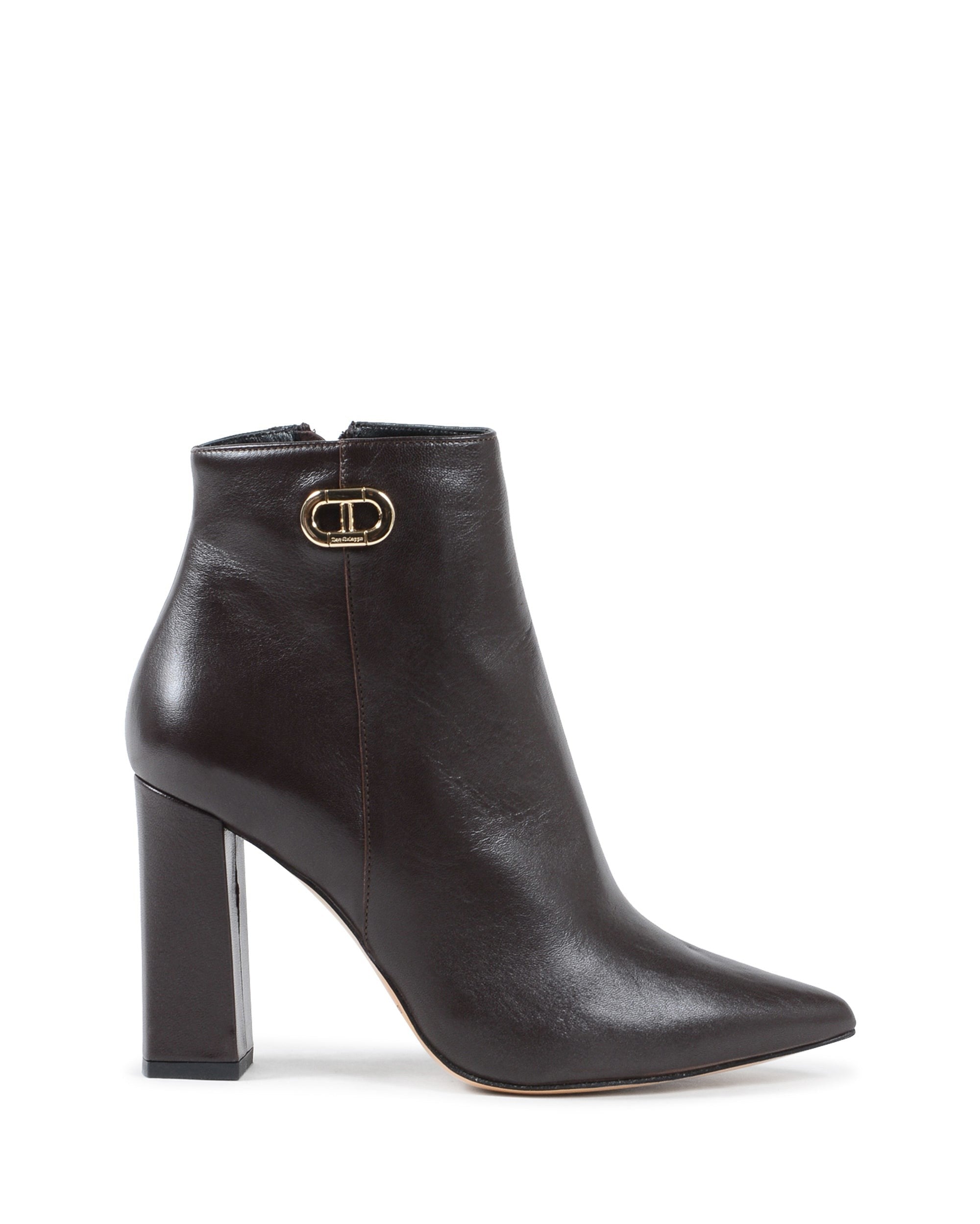 The bold logo detail gives this ankle boot a refined aesthetic.