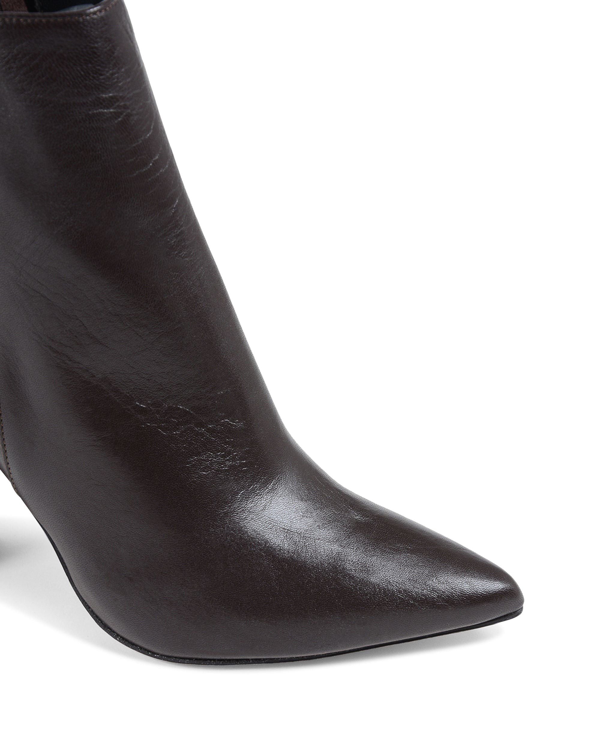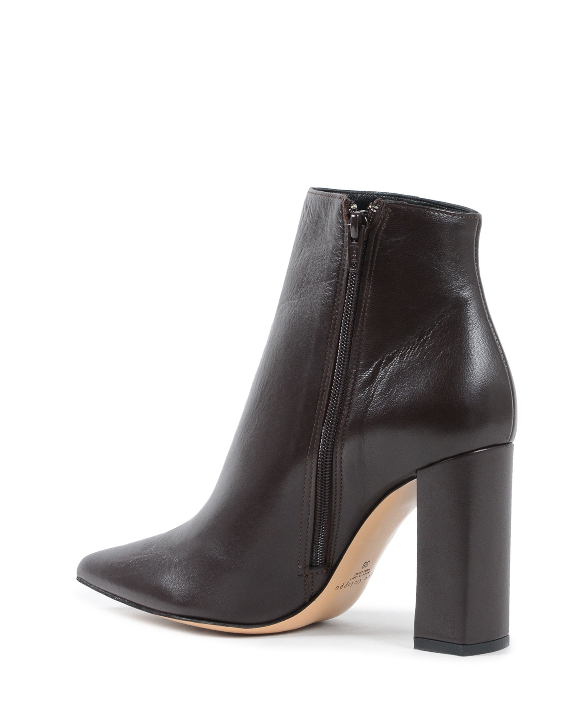 The Elizabeth ankle boot has a slender style emphasized by its pointed toe that creates a sophisticated look. This elegant calfskin shoe sits on a 100mm heel.