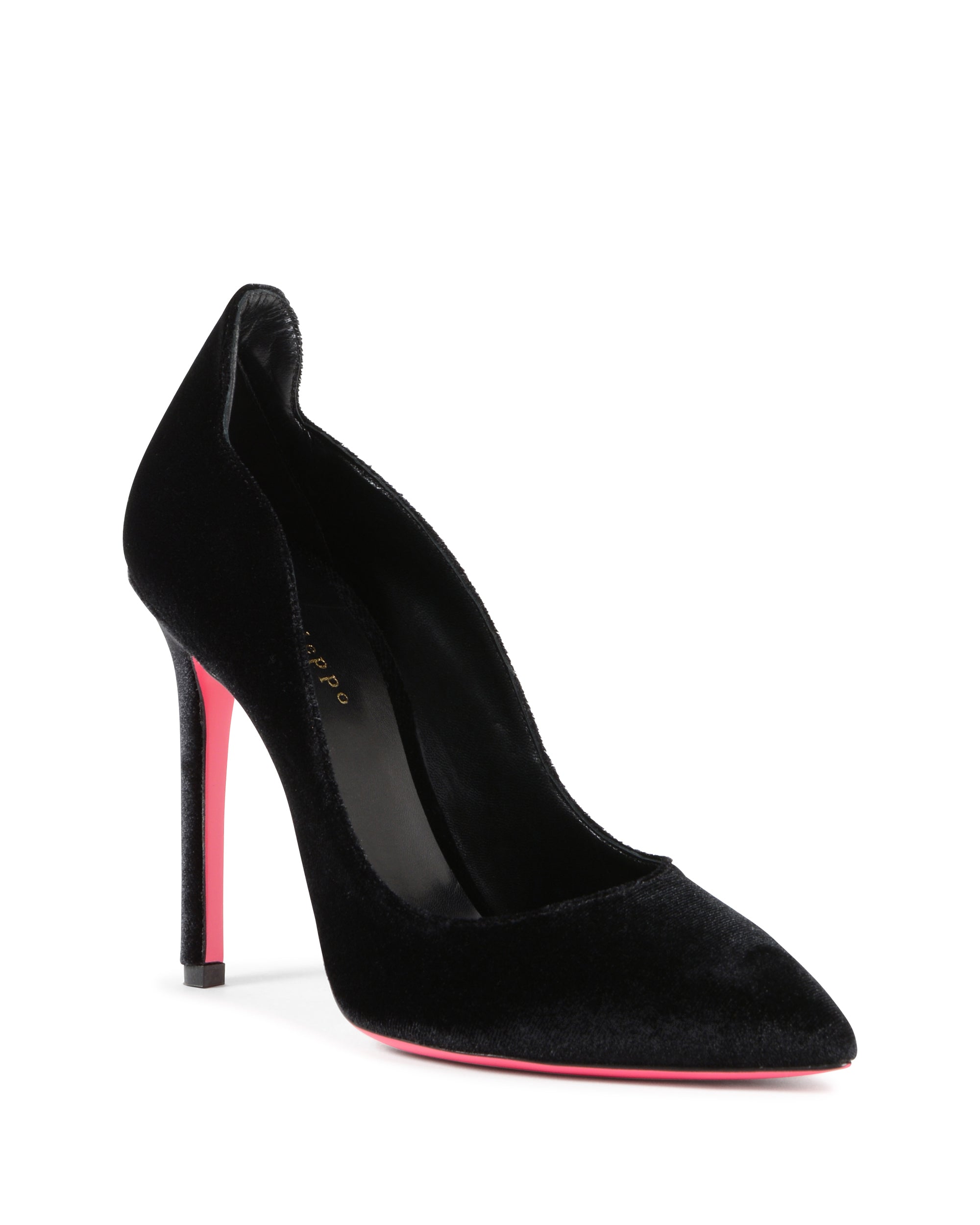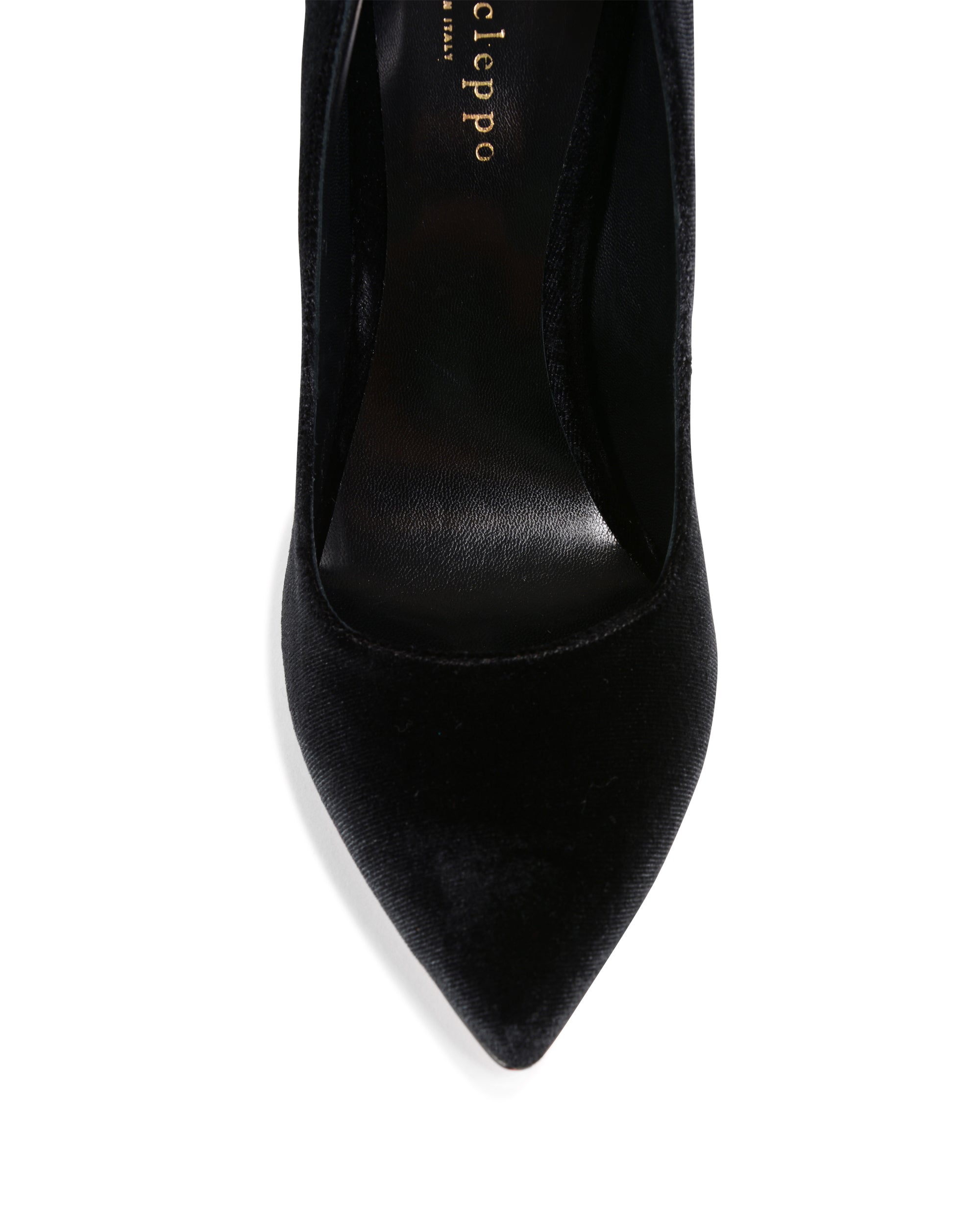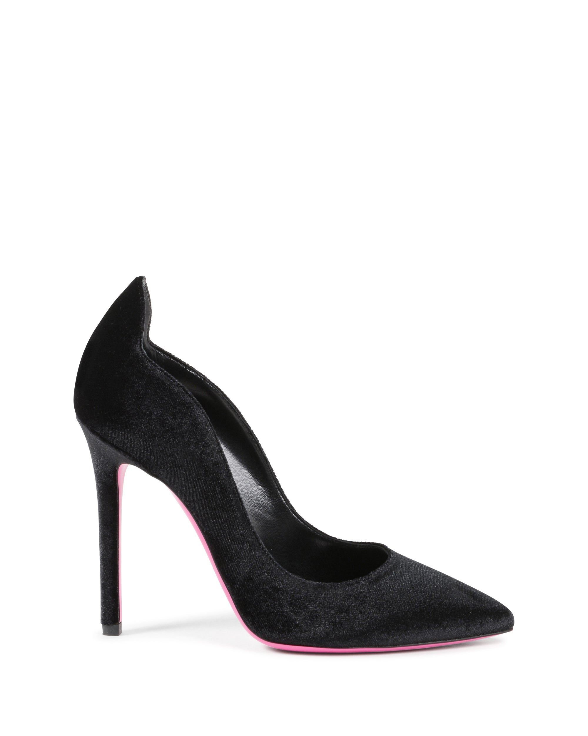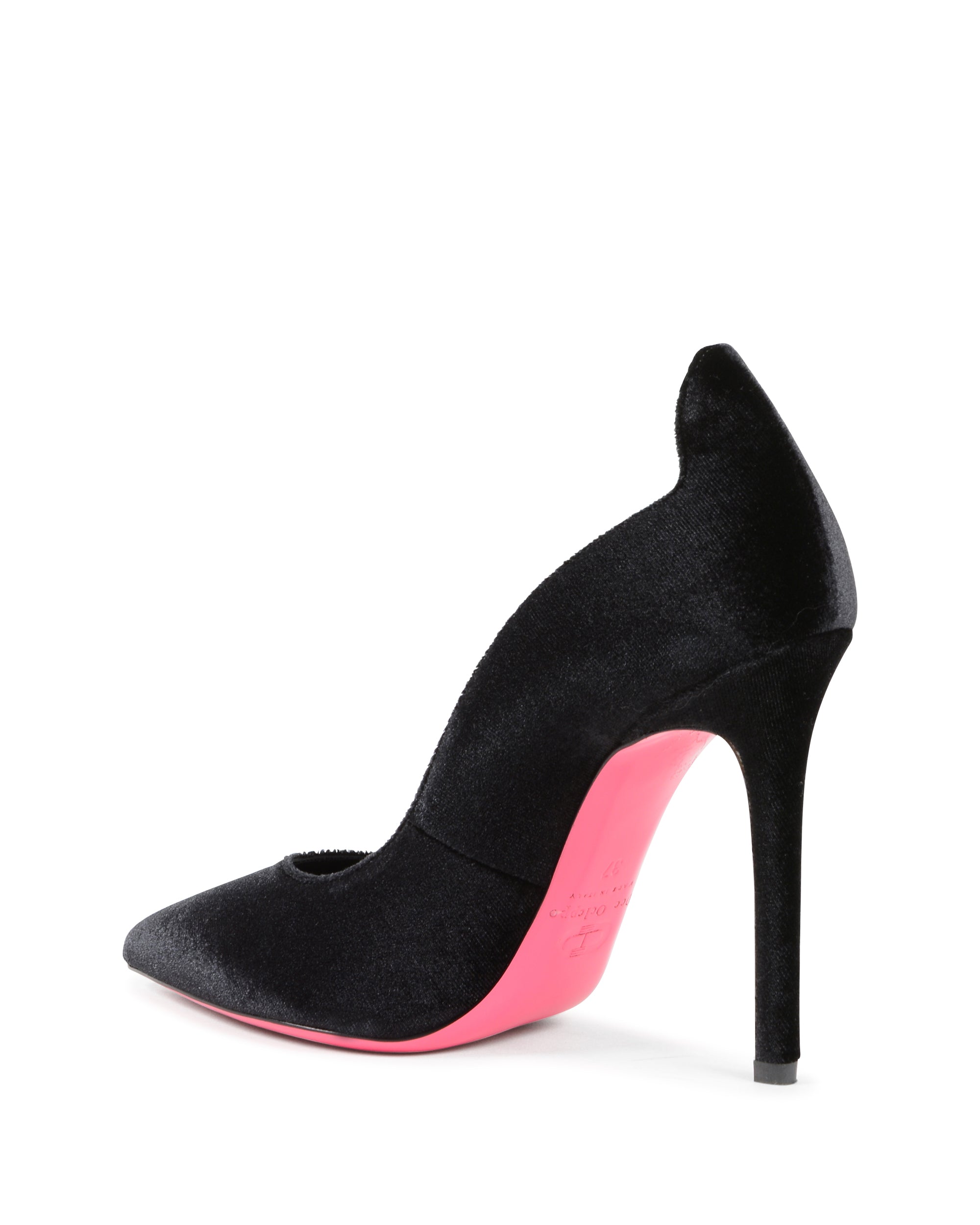 The Dee Love Me Pump redefines the classic silhouette of our traditional everyday pump. In 100% Velvet this heel is seductively simplistic. An 11.5 cm heel works to lengthen the legs while our classic pink leather sole adds a pop of color.