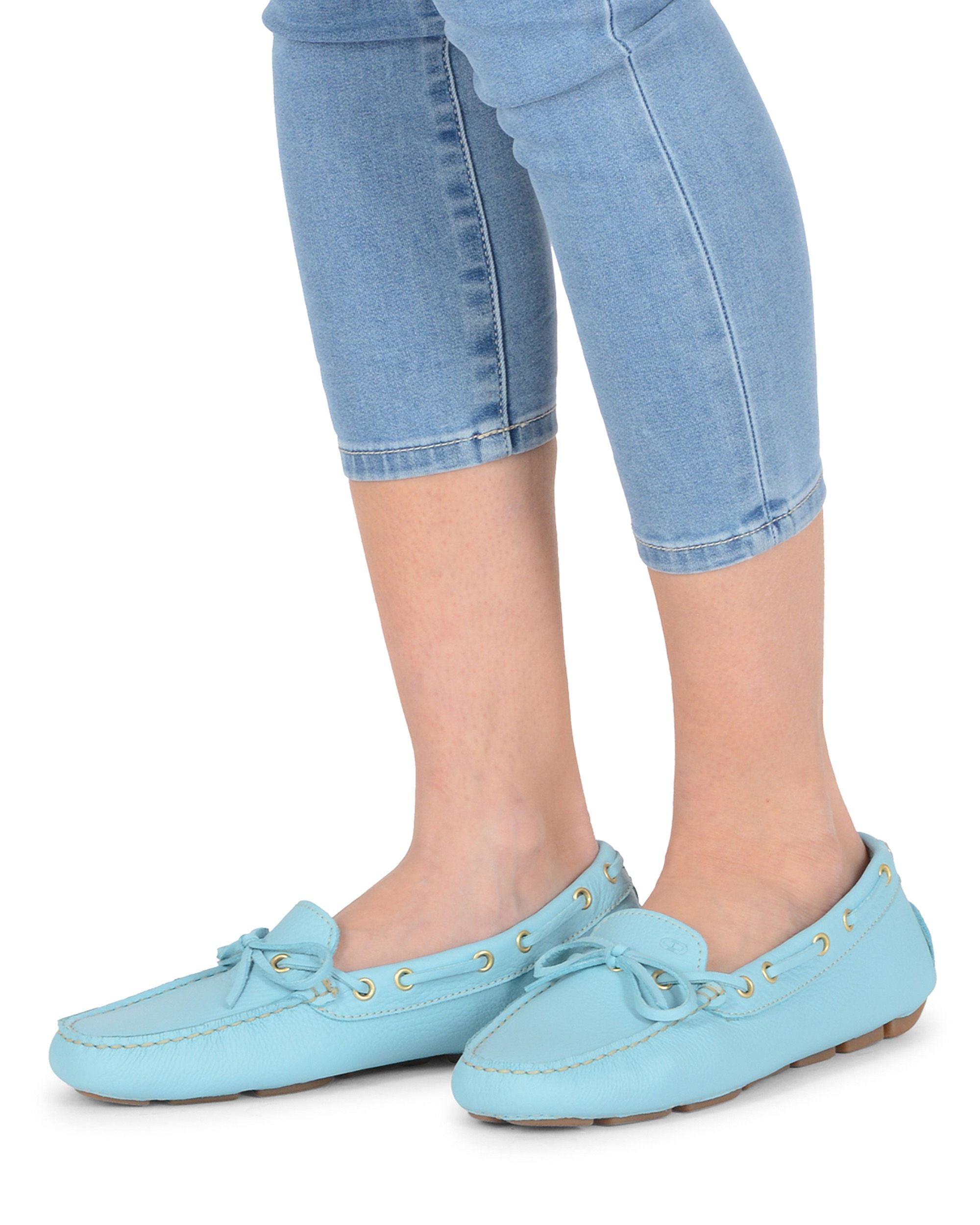 The Dee Elegant Lady Loafer in light blue is the epitome of class. Made in Italy by some of the countries finest craftsmen, this shoe is 100% leather and features a rubber sole and bow detail.