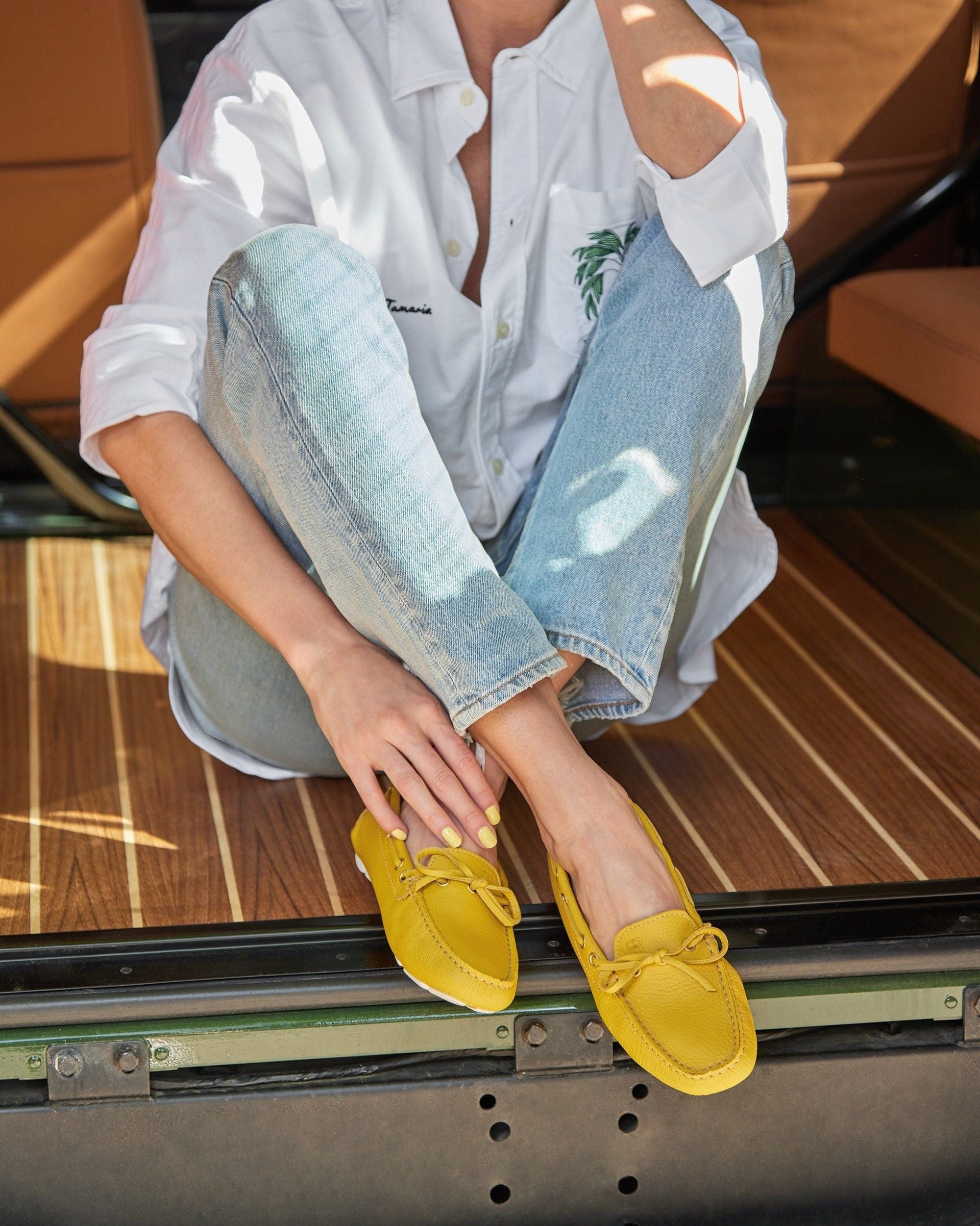 The Dee Elegant Lady Loafer in yellow is the epitome of class. Made in Italy by some of the countries finest craftsmen, this shoe is 100% leather and features a rubber sole and bow detail.
