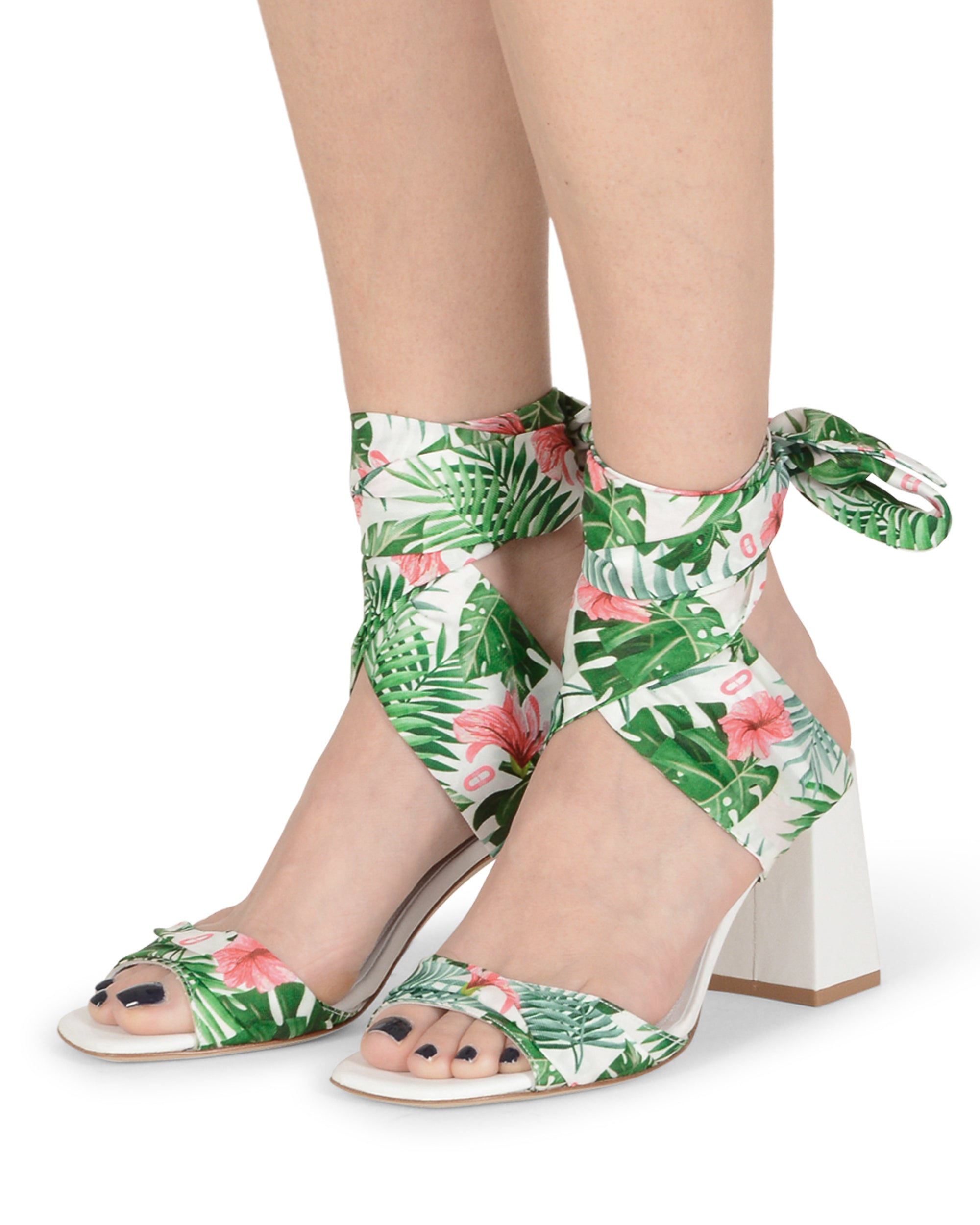 This shoe with a comfortable wide heel, with this silk printed scarf is ideal for a sparkling evening or a cocktail with friends. made by the best Italian artisans it is all Made in Italy.
