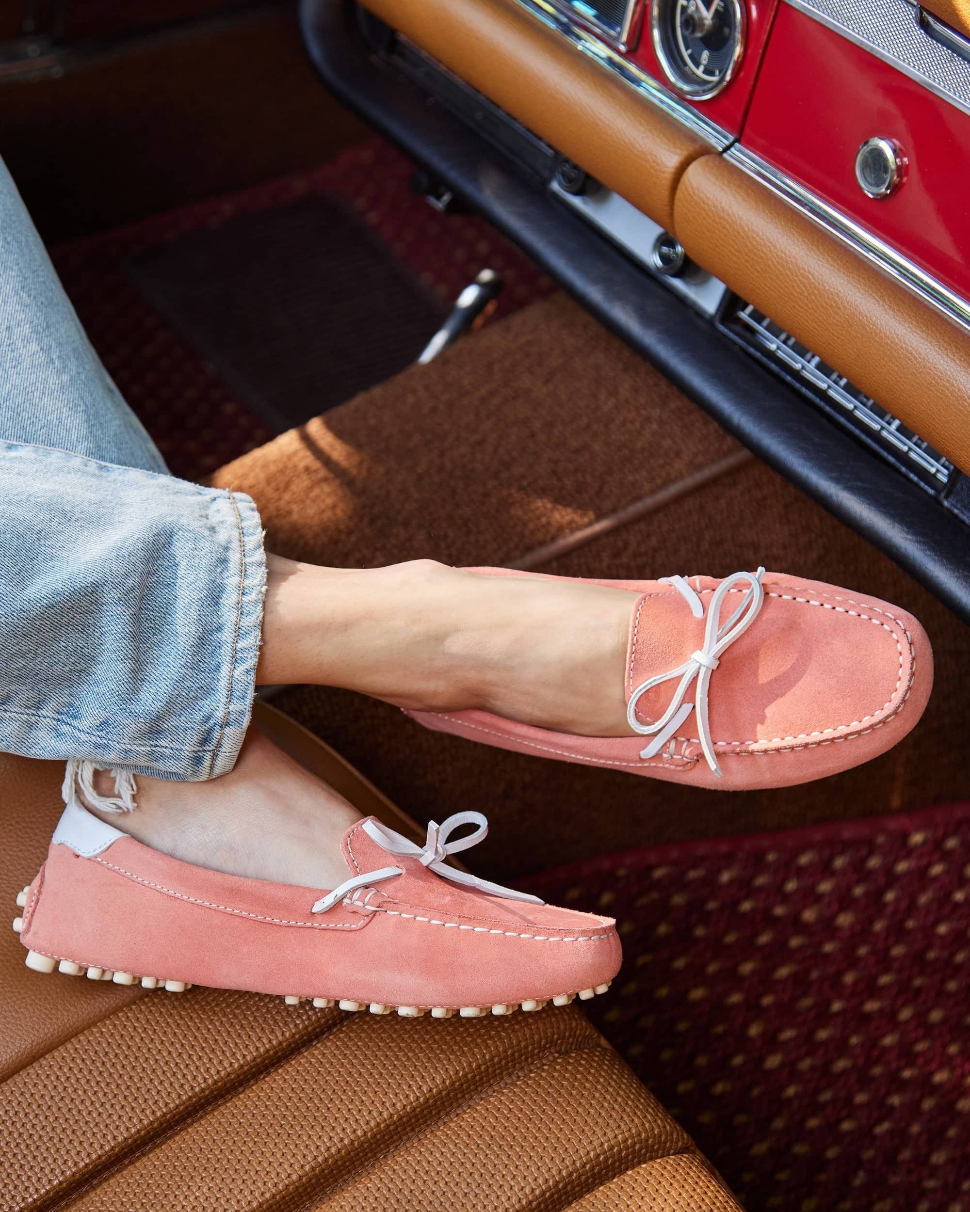 The Dee In The Driver Seat Loafer in Coral is the epitome of class. Made in Italy by some of the countries finest craftsmen, this shoe is 100% suede leather and features a rubber sole and bow detail.