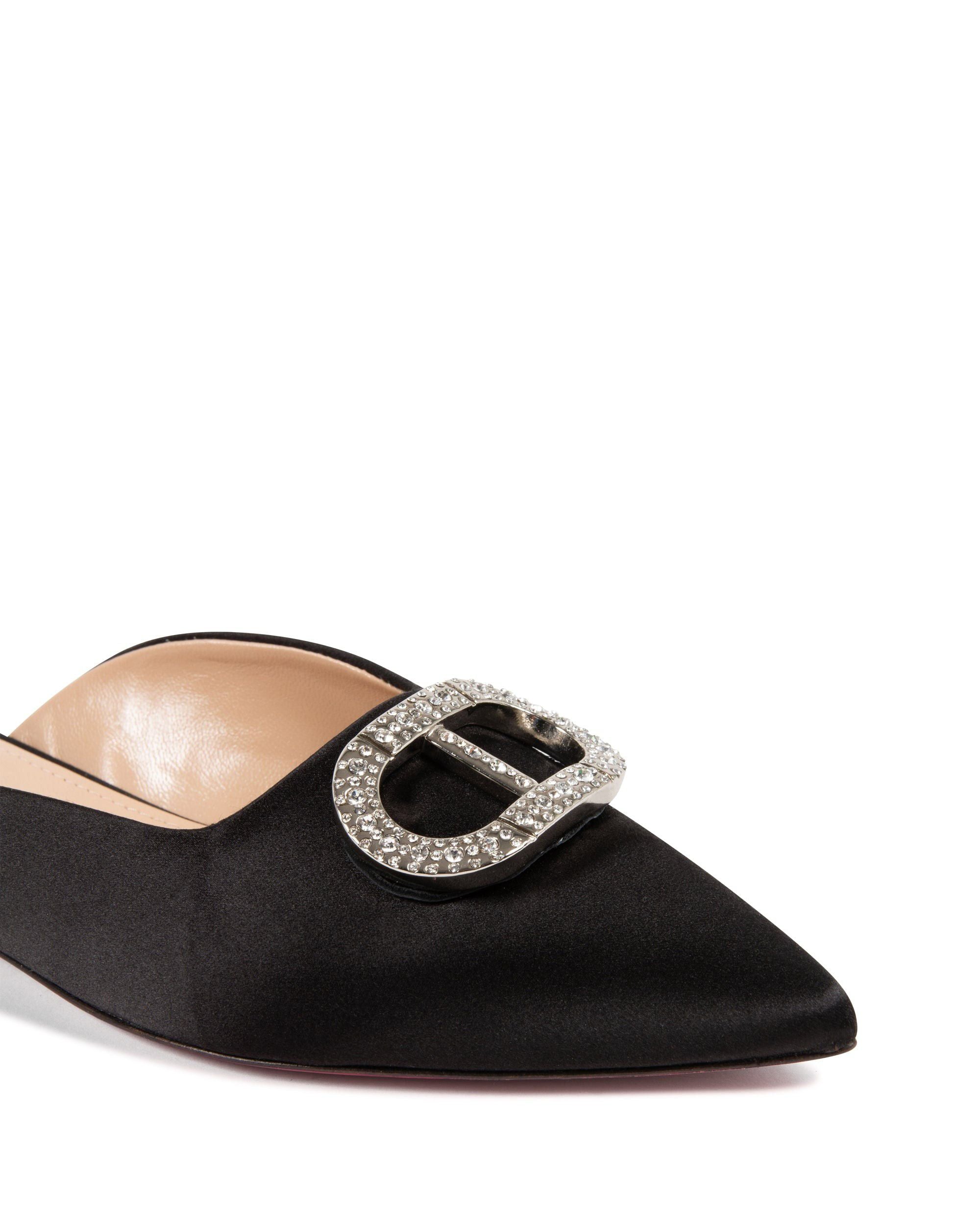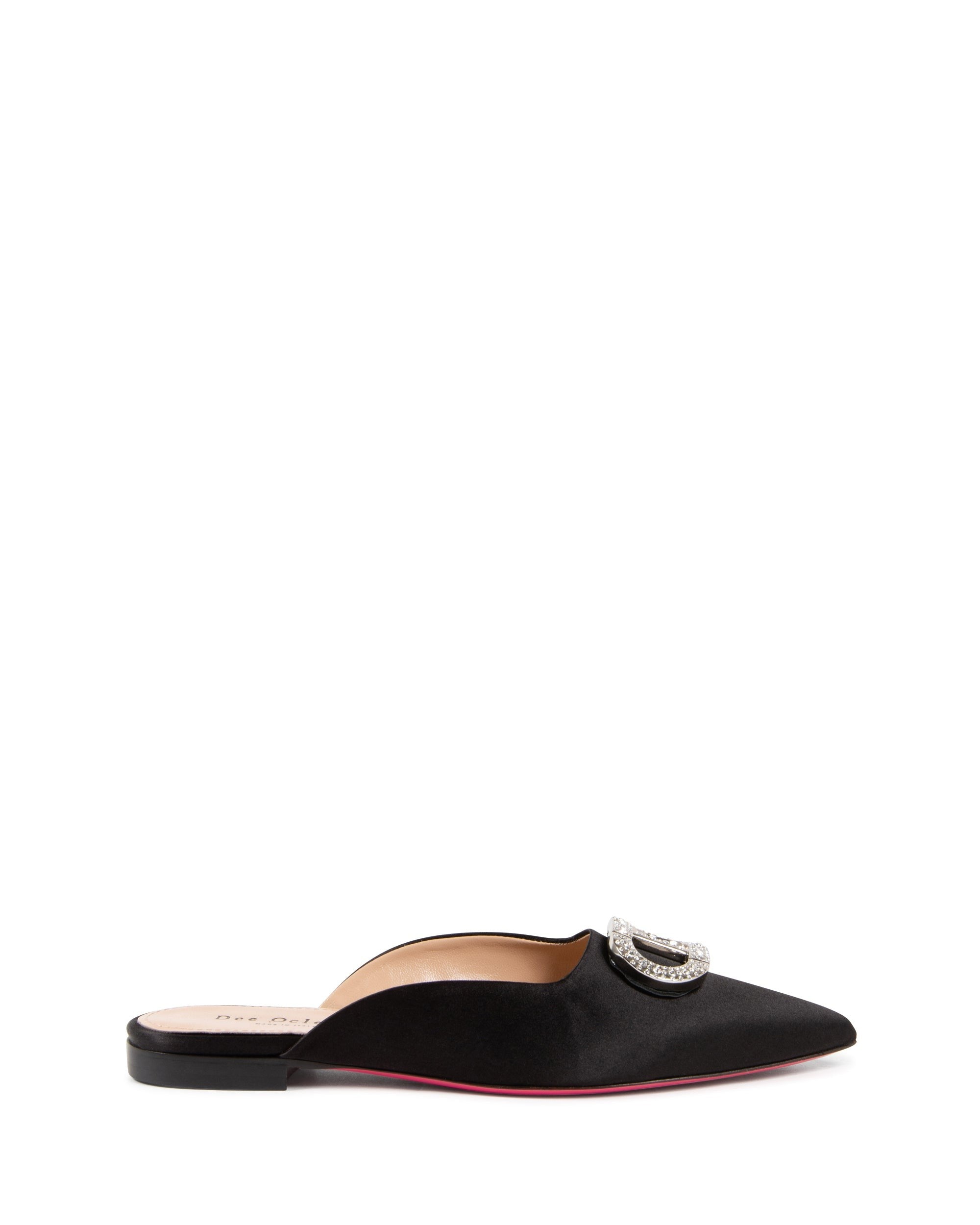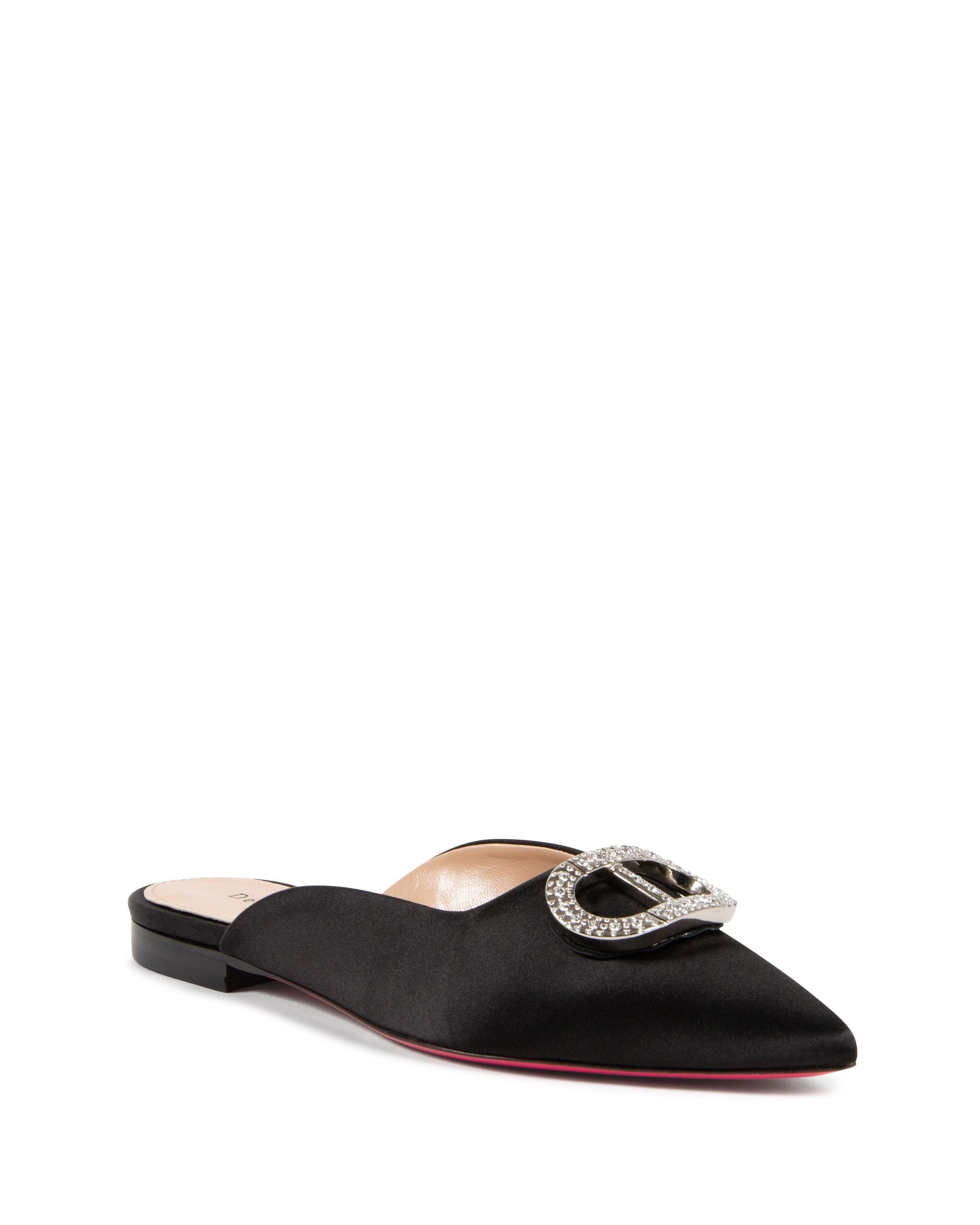 Head to the holiday party with confidence while wearing Dee's Monroe slides. Crafted in Italy, this pointed toe pair comes with a shimmering satin upper further accented by strass logo detail. A slim heel adds just a touch of lift and a finishing note of glamour. Wear yours with lace-covered dresses into the evening.