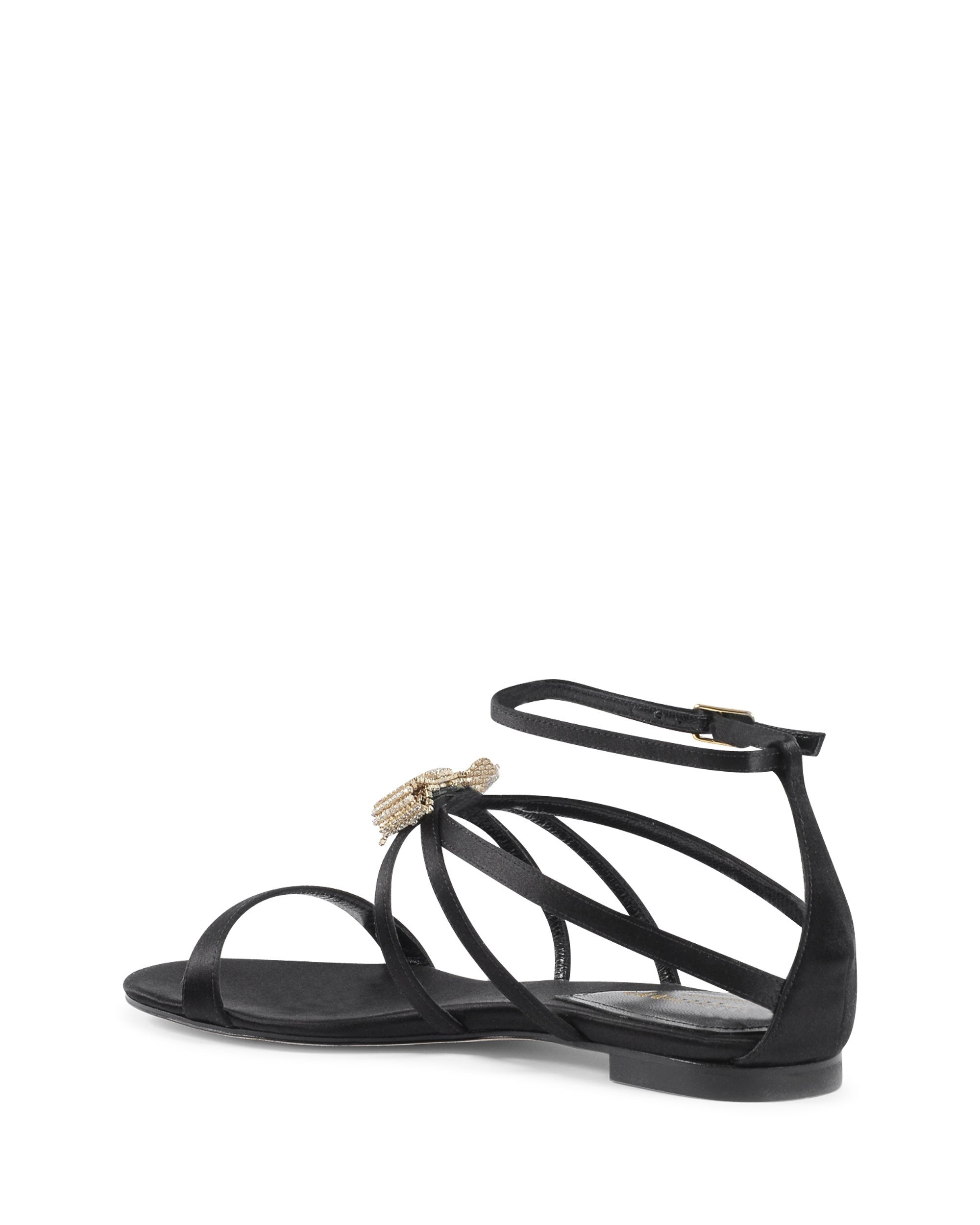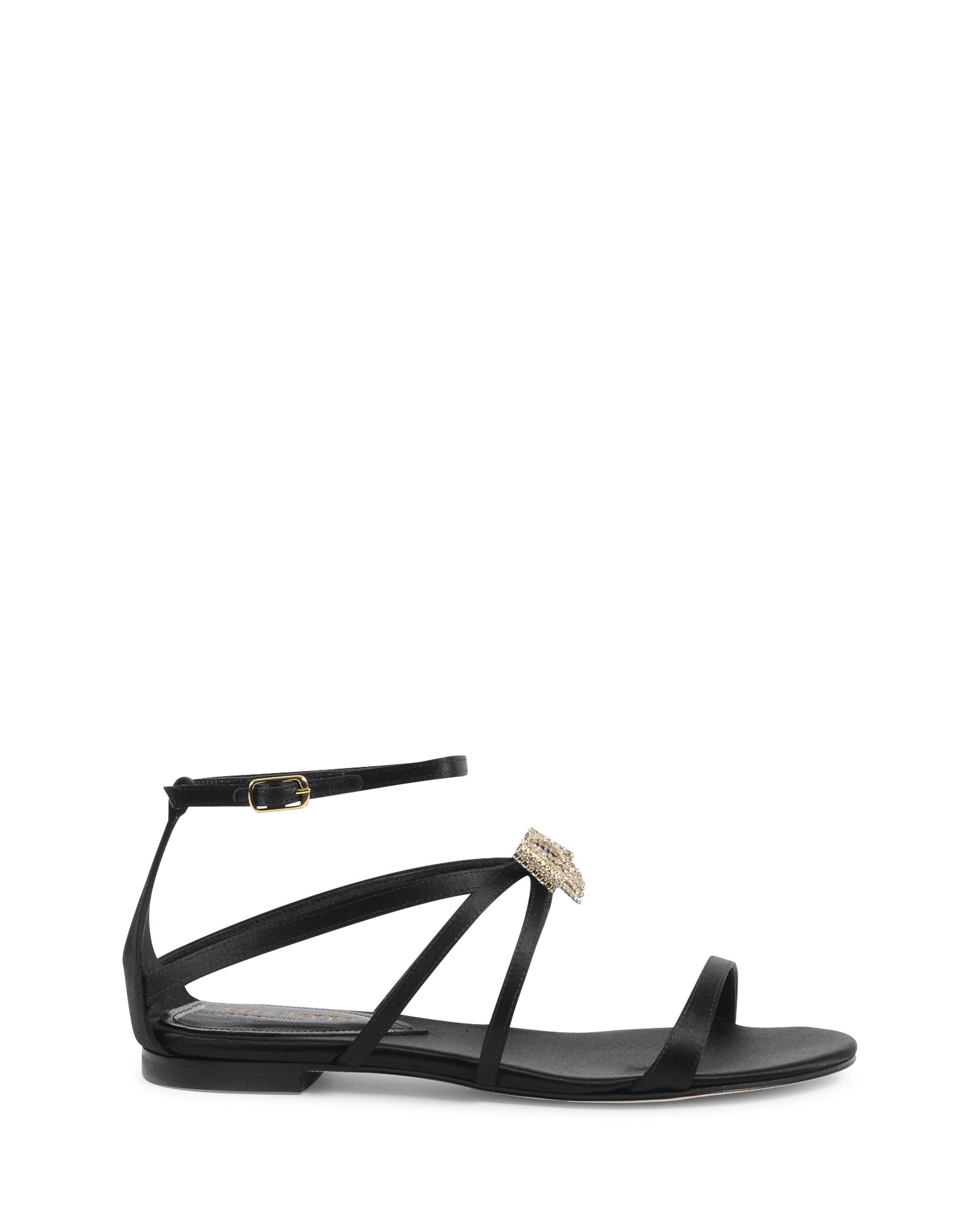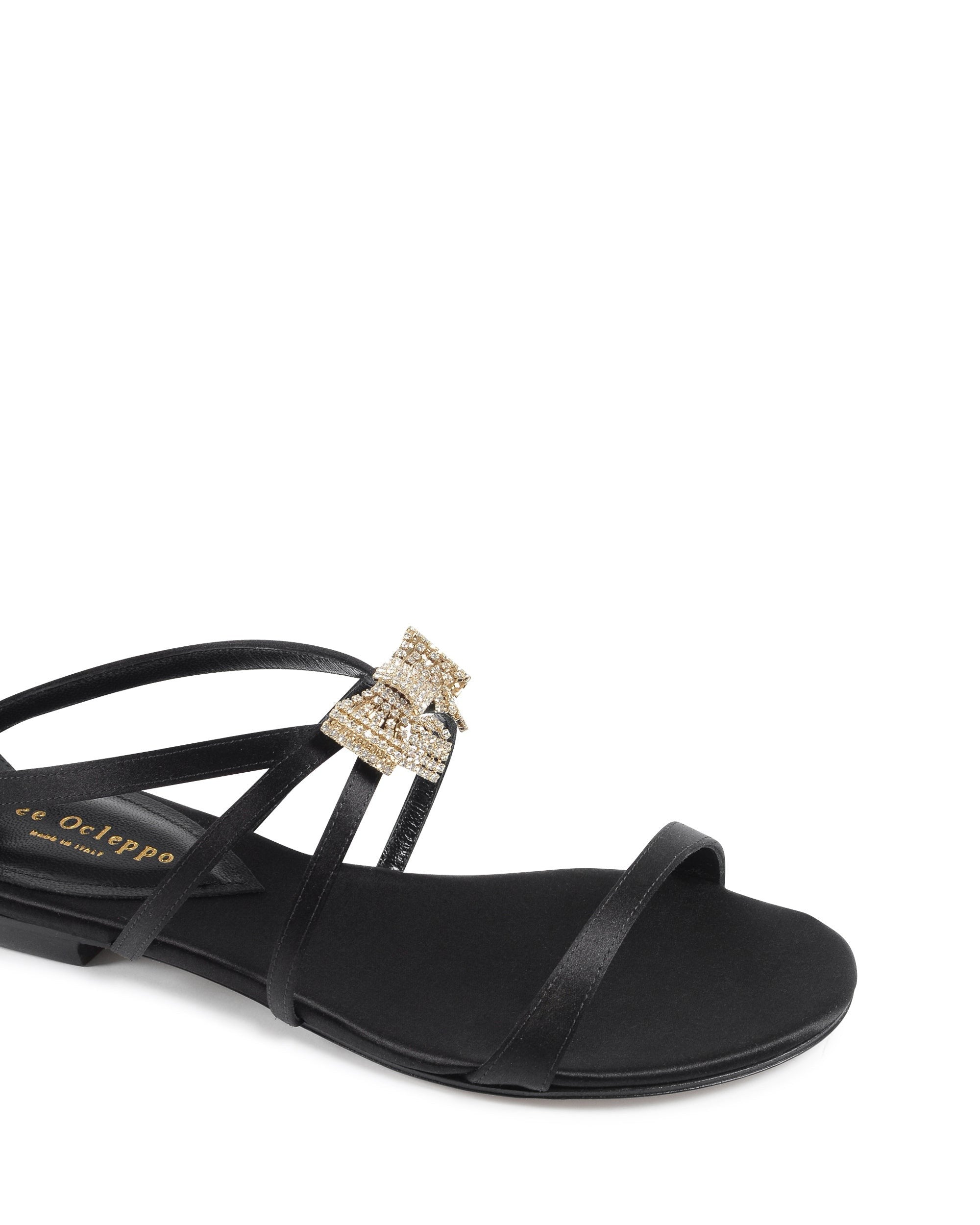This small swarovski bow applied on the instep will make this low satin sandal with ankle strap sparkle. Made by the best Italian artisans. 100% Made in Italy.