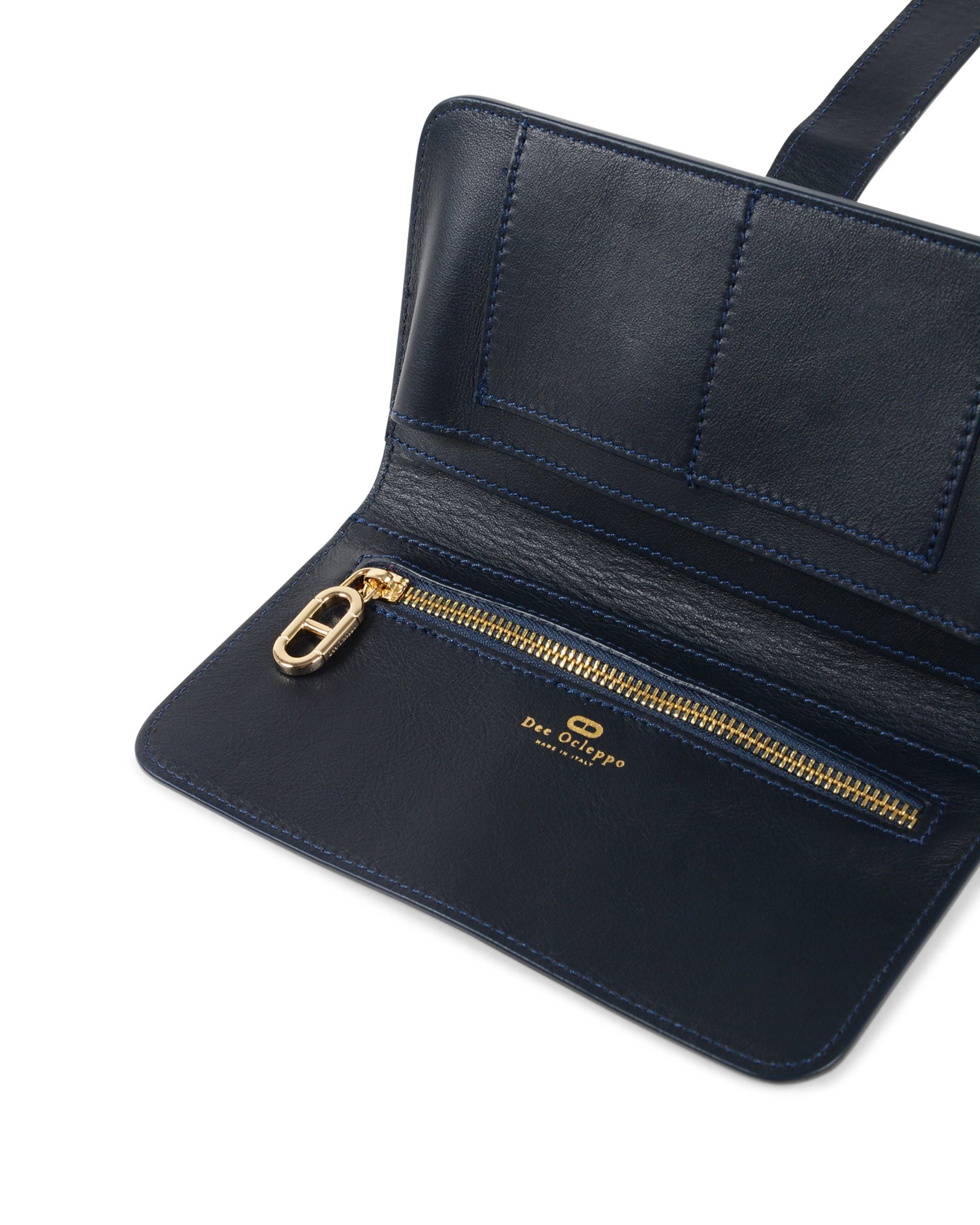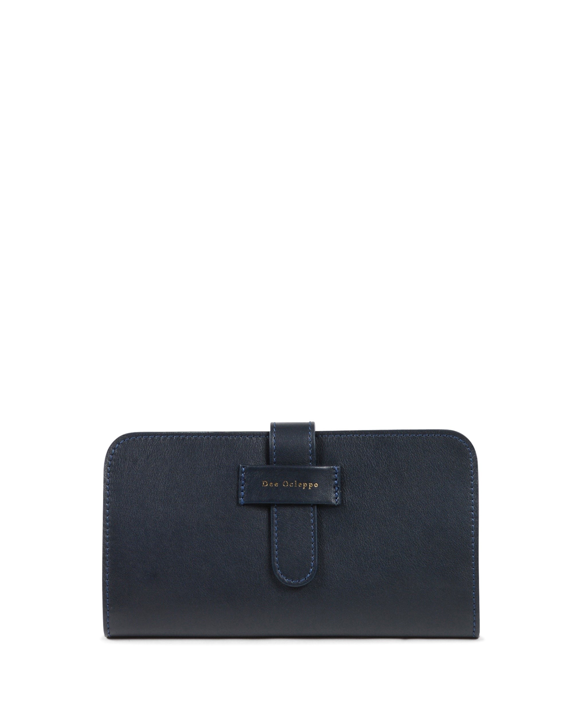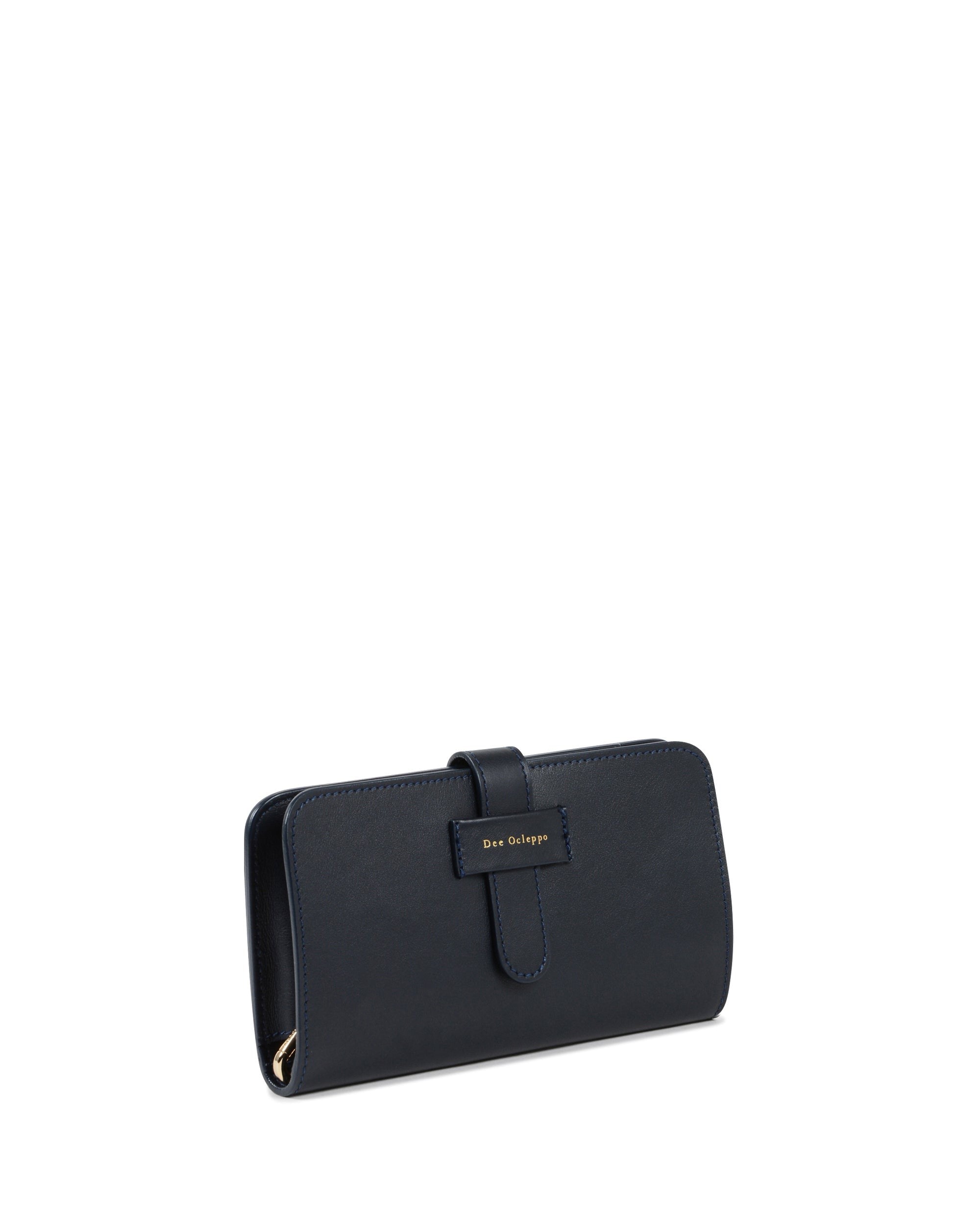 • Dee's 'Monogrammed' wallet is subtly embellished with a gilded gold logo. It's made from glossy textured leather and it opens to a zipped coin pocket interior with slots to keep your cards and notes secure. The slip-fastening makes for a secure closure.