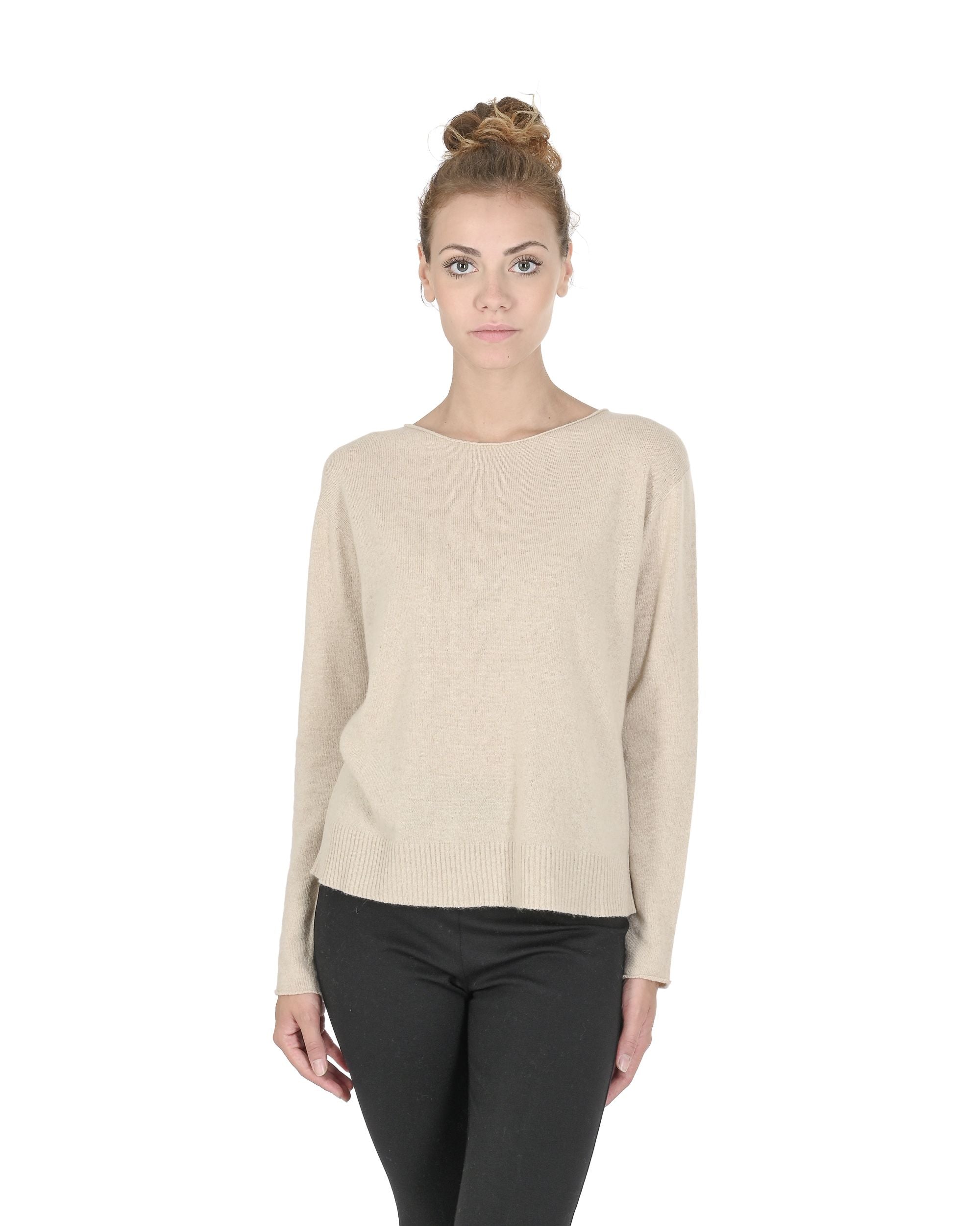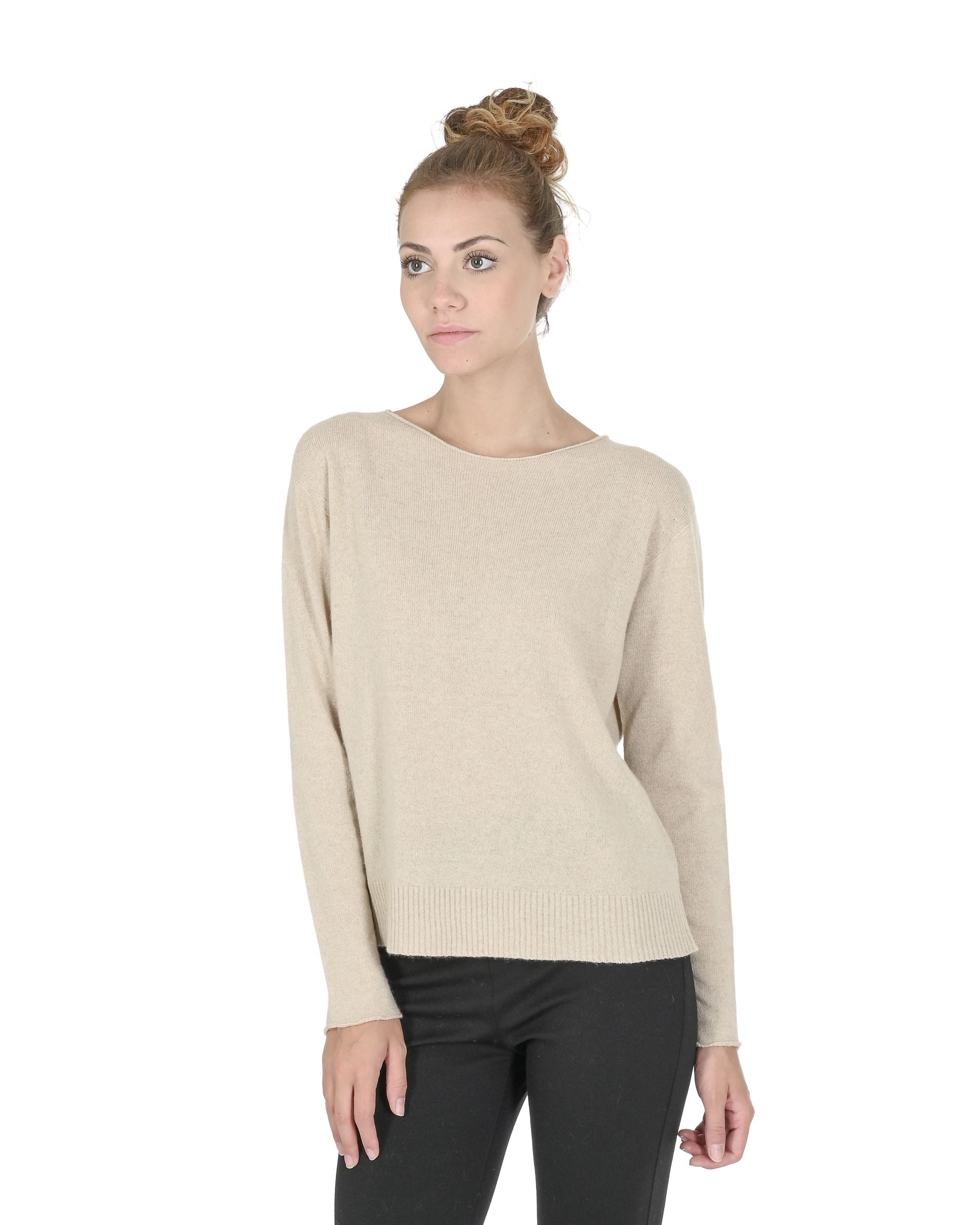 Suéter extragrande con cuello barco para mujer de cachemira Crown of Edinburgh COE 008 BEIGE