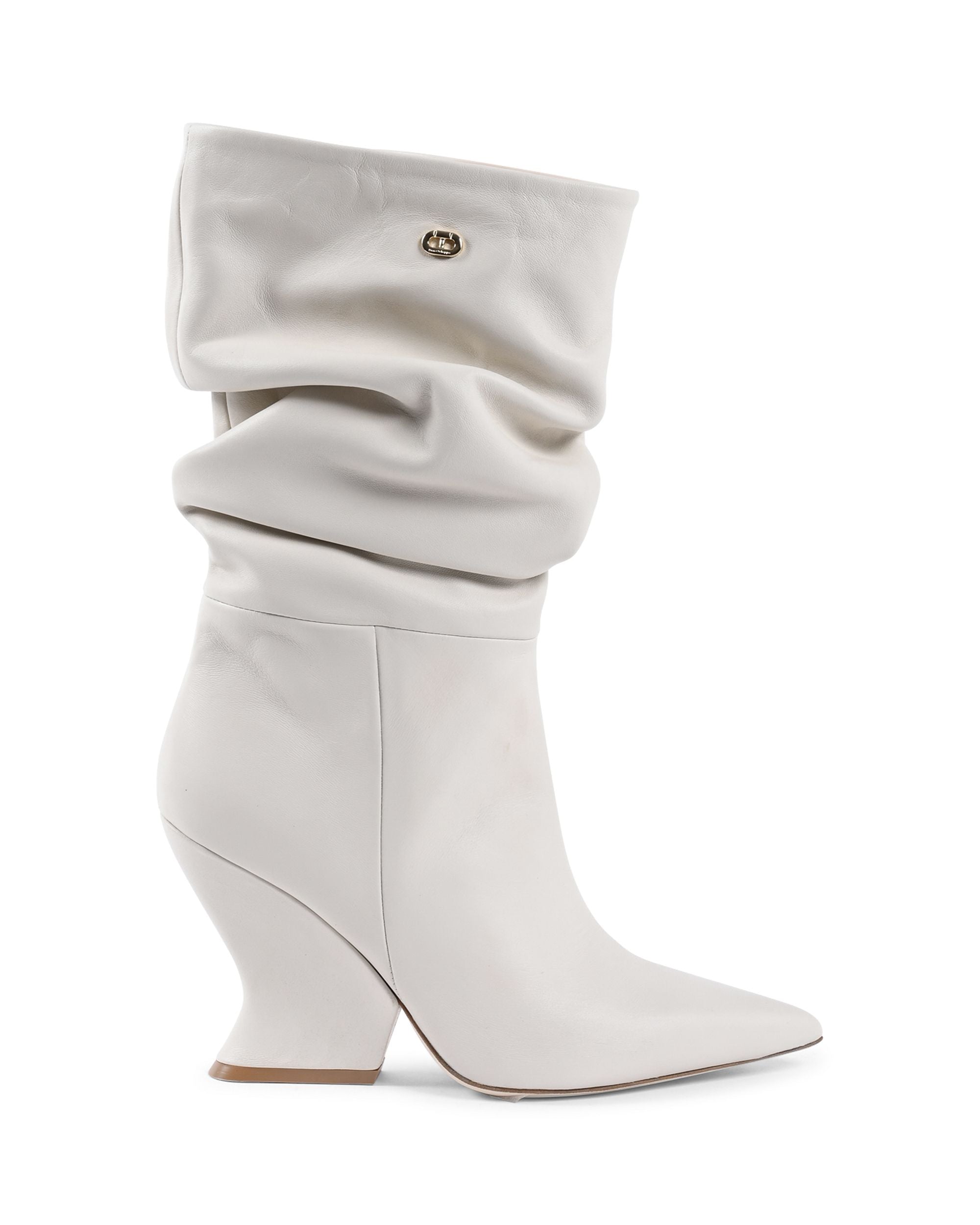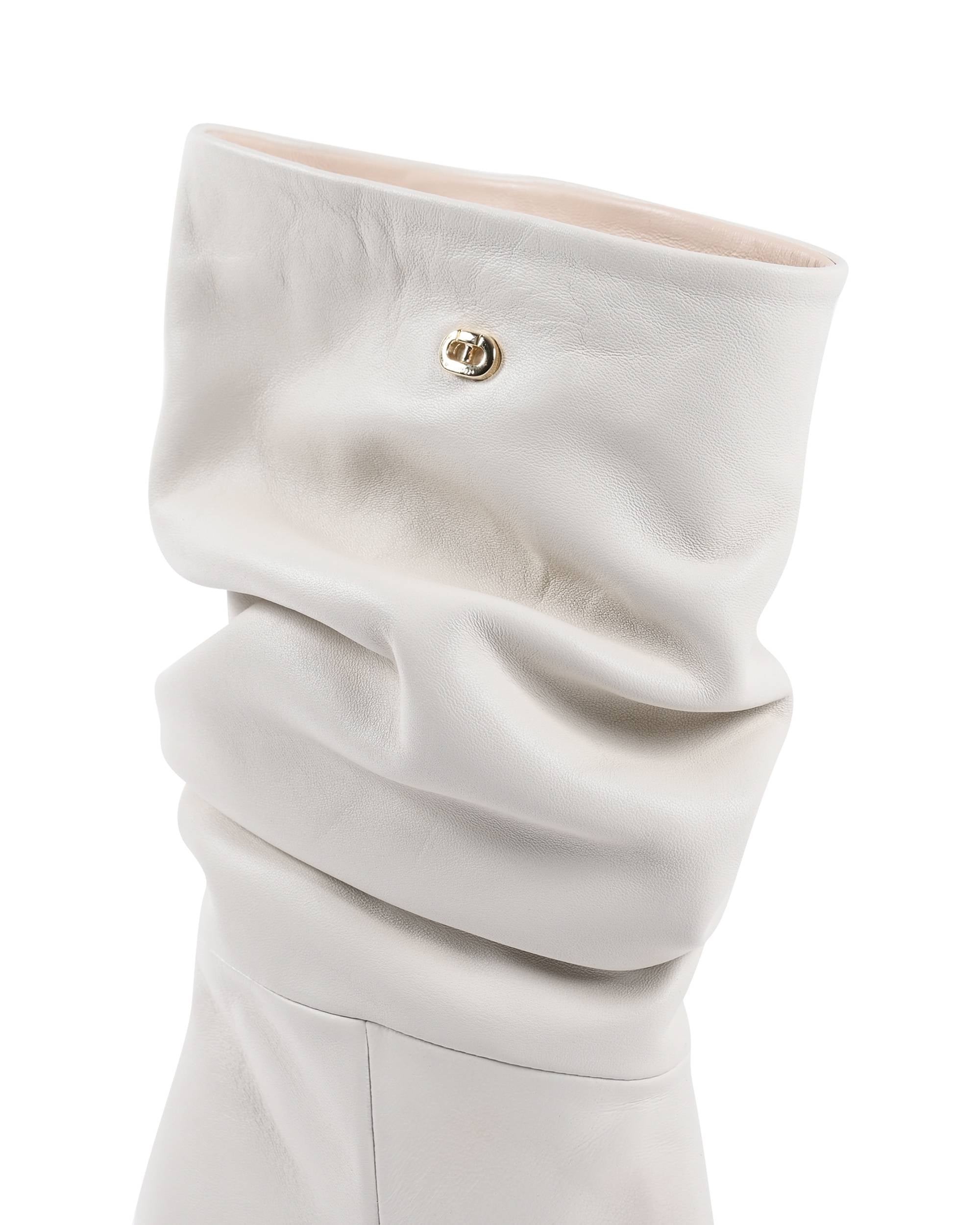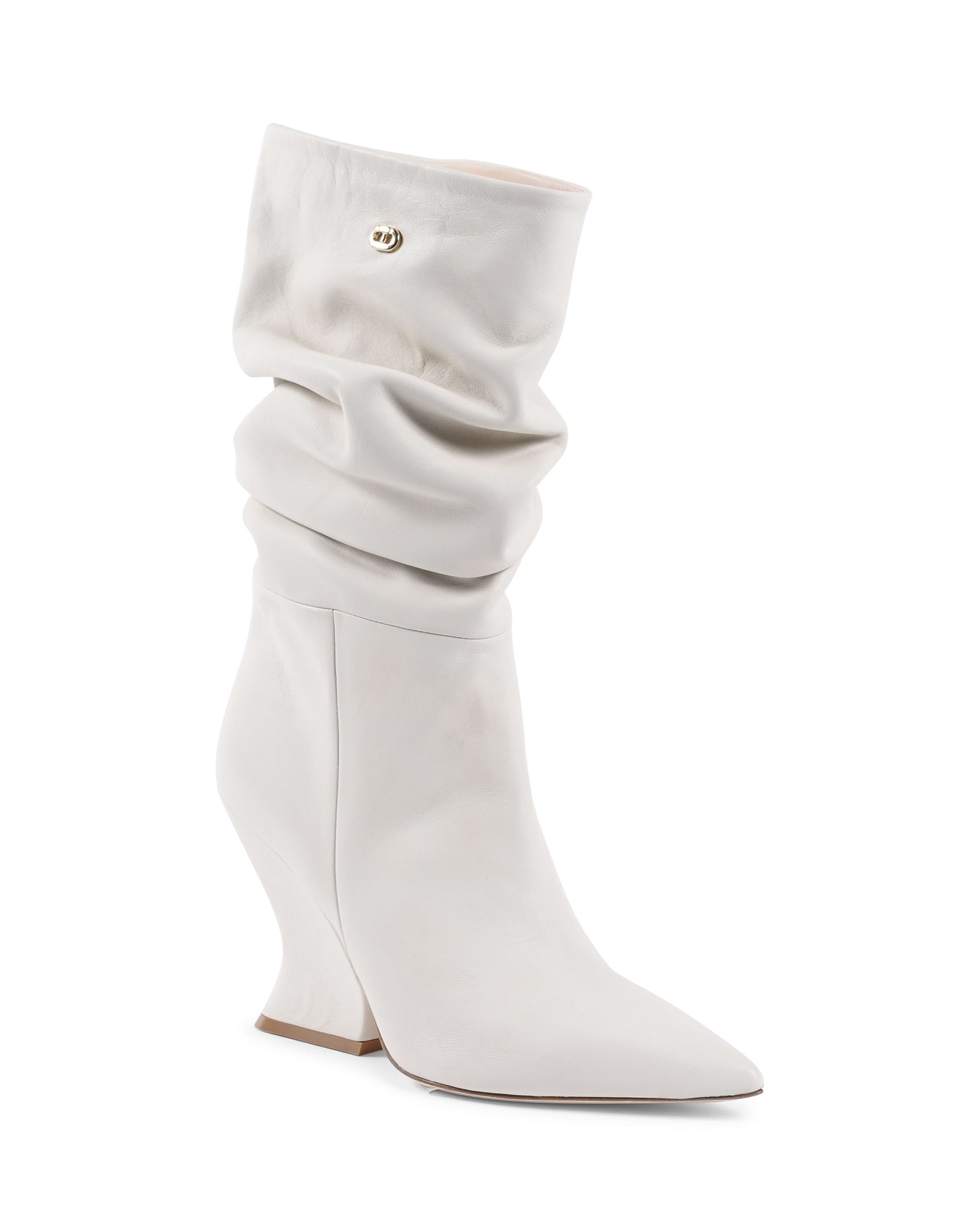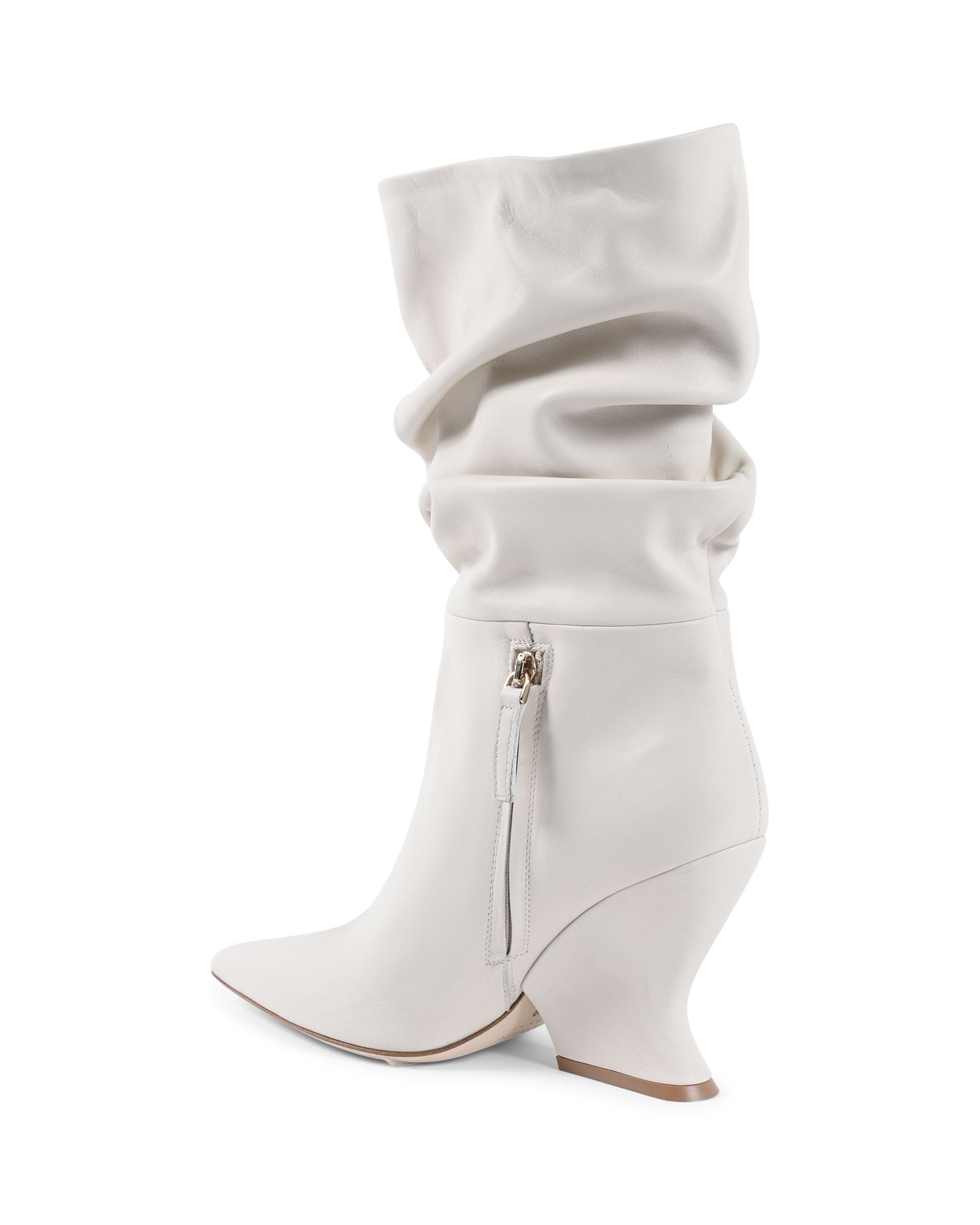 Las botas holgadas de la firma Dee Ocleppo están hechas en Italia desde napa crema hasta una forma de punta y se asientan sobre un tacón de cuña de 10 cm de la firma.