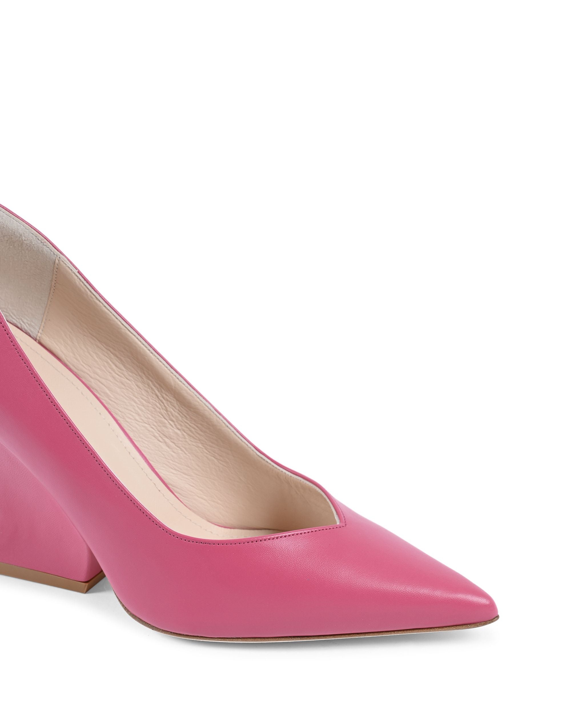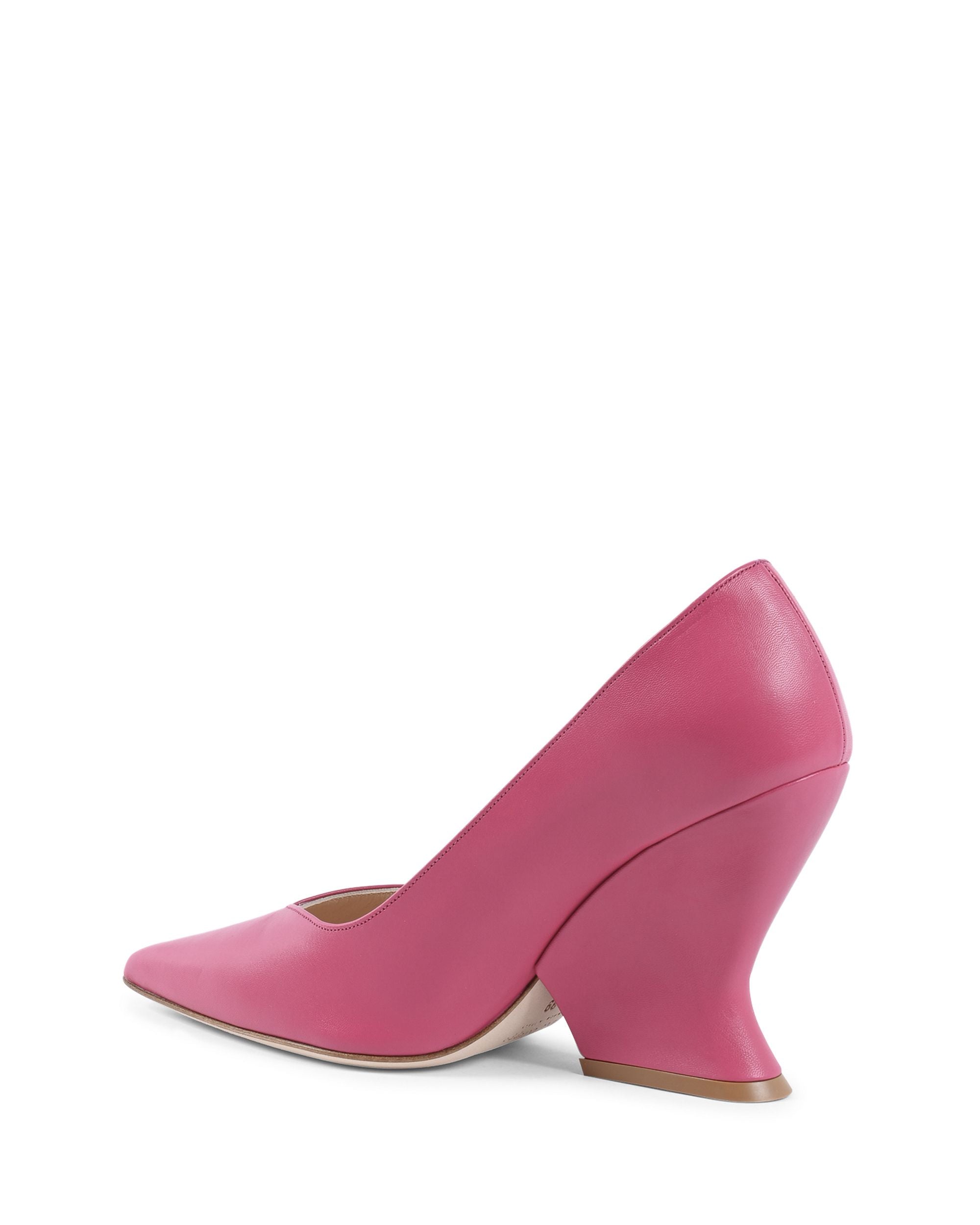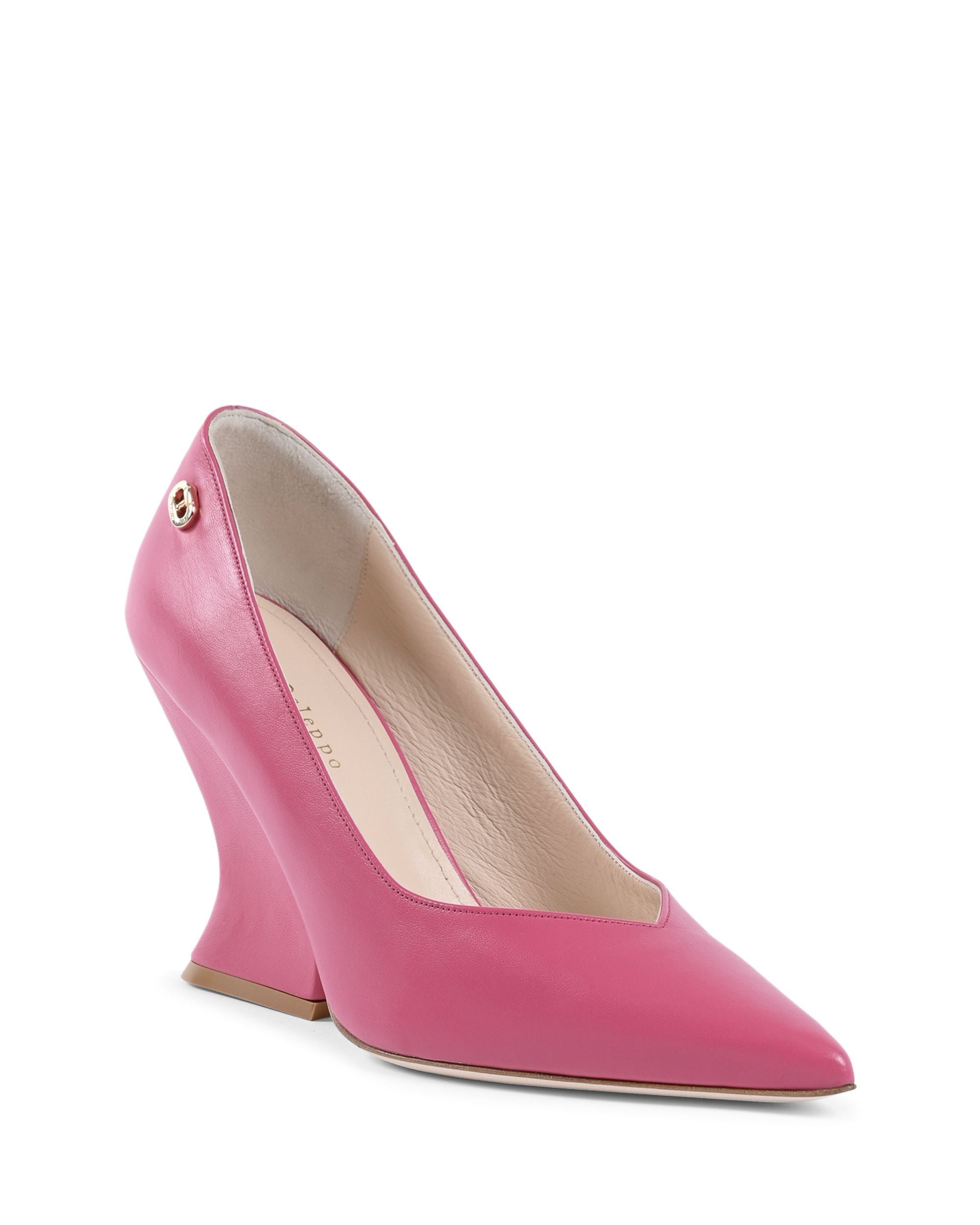 Los zapatos de salón exclusivos de Dee Ocleppo están fabricados en Italia con piel de napa en forma de punta y se asientan sobre un tacón de cuña en forma de onda de 10 cm exclusivo.
