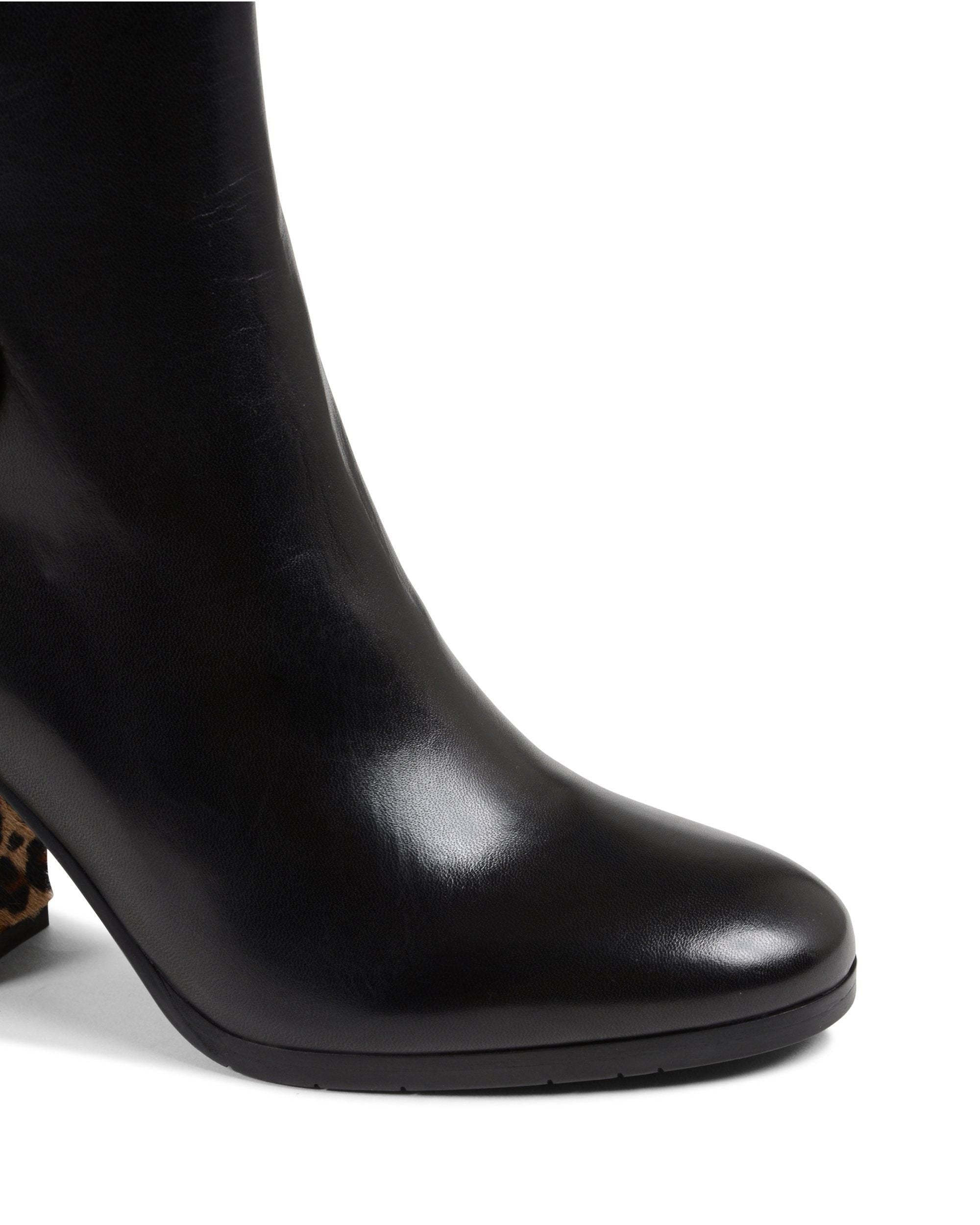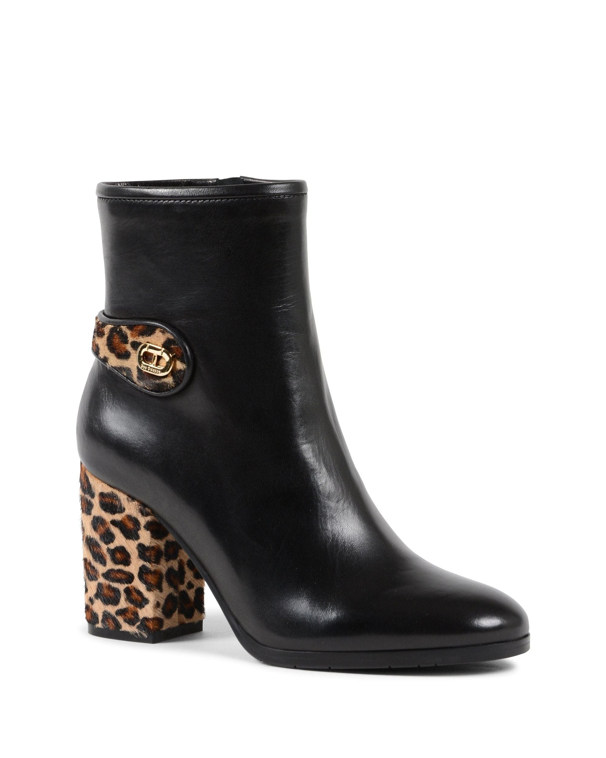 El botín Dee Carion le da al clásico botín negro un toque divertido con detalles de pony leopard y un tacón de 8 cm. Este botín está elaborado con el mejor artesano de Italia, 100 % cuero italiano fino, y agrega un nivel de detalles lujosos a cualquier atuendo.