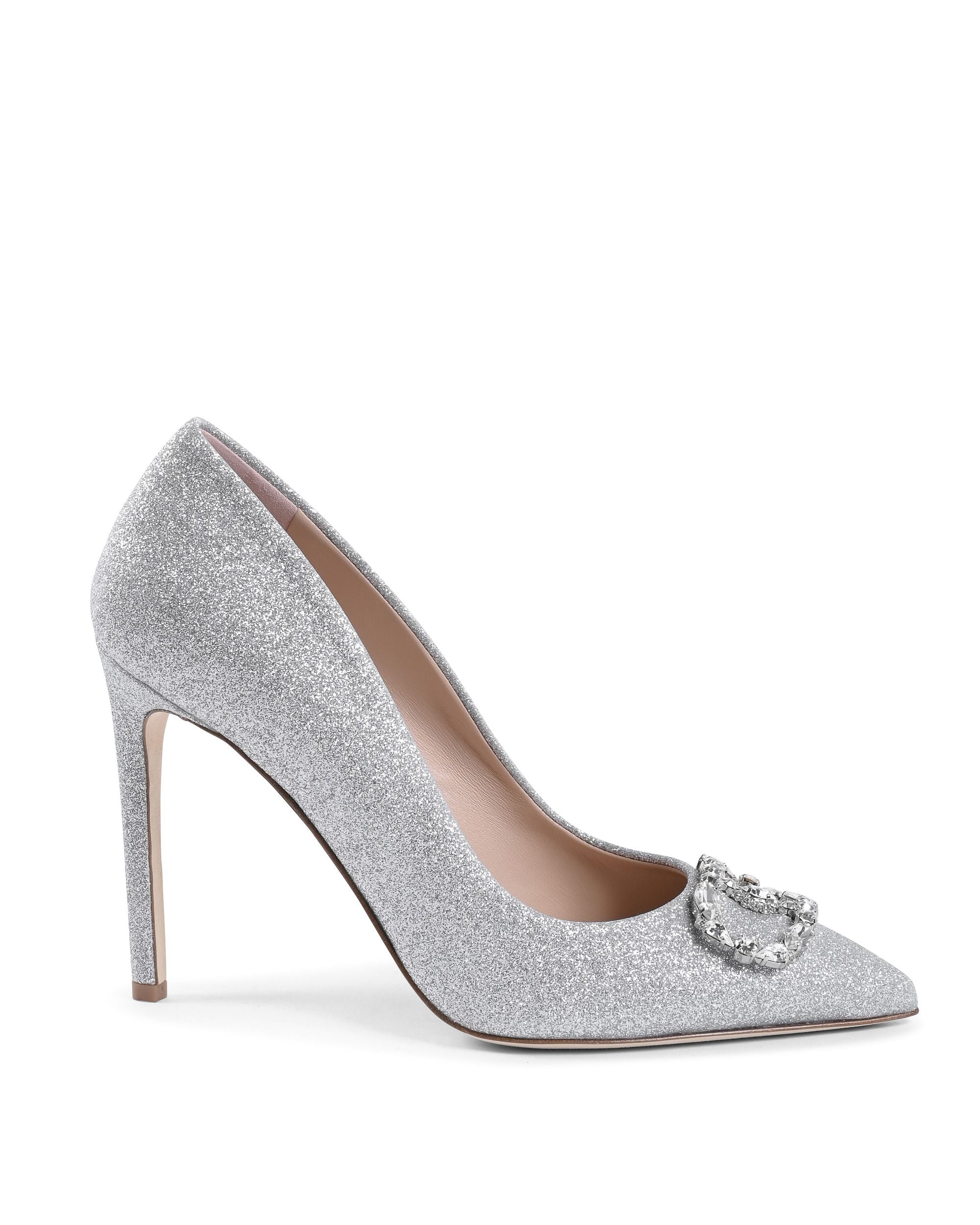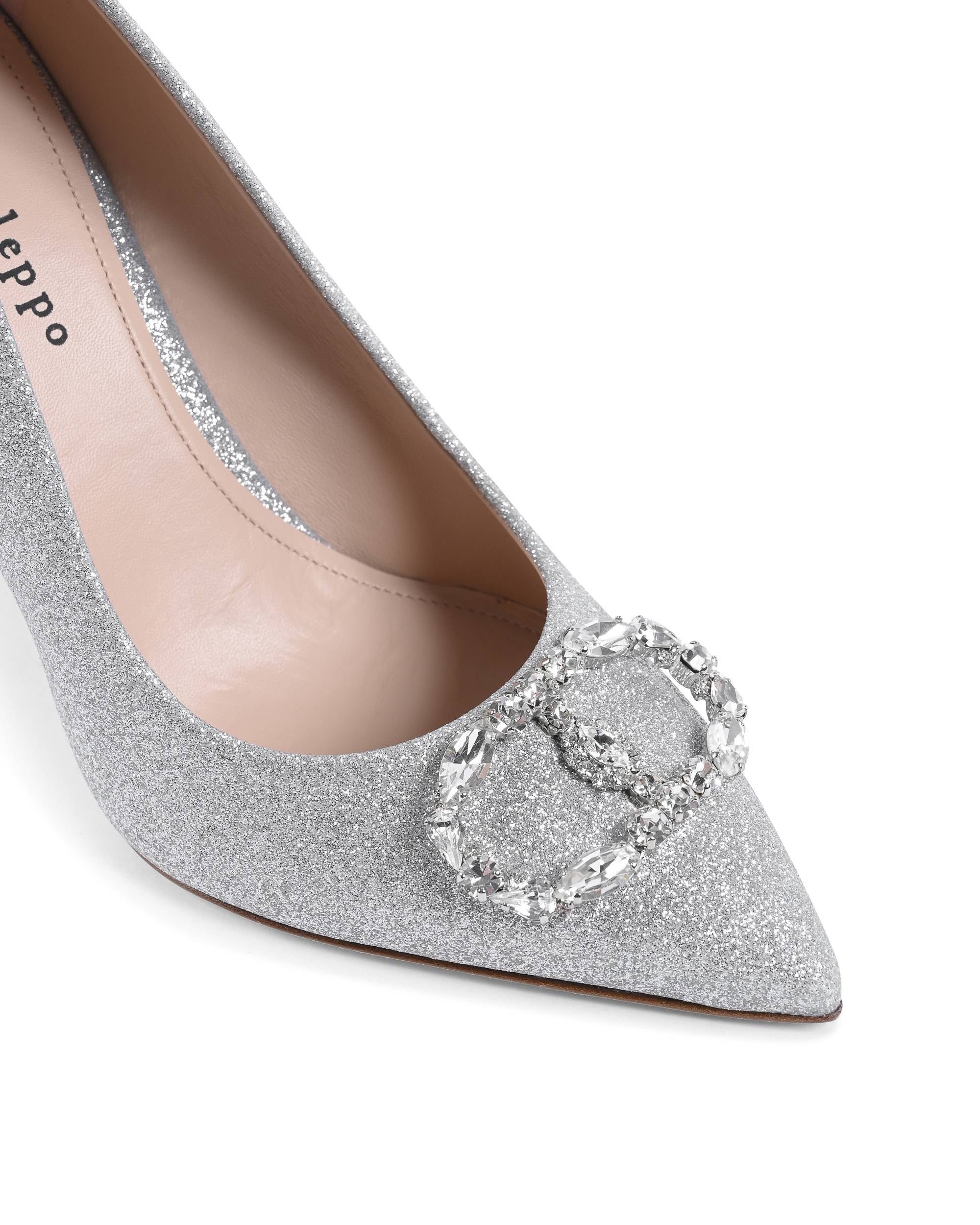 Dando a nuestra bomba plateada estándar una actualización refinada, esta bomba presenta un nuevo logotipo de Dee Ocleppo diseñado. Hecho en Italia por algunos de los mejores artesanos del país, este zapato es 100% brillante. La altura del tacón mide 10 cm.