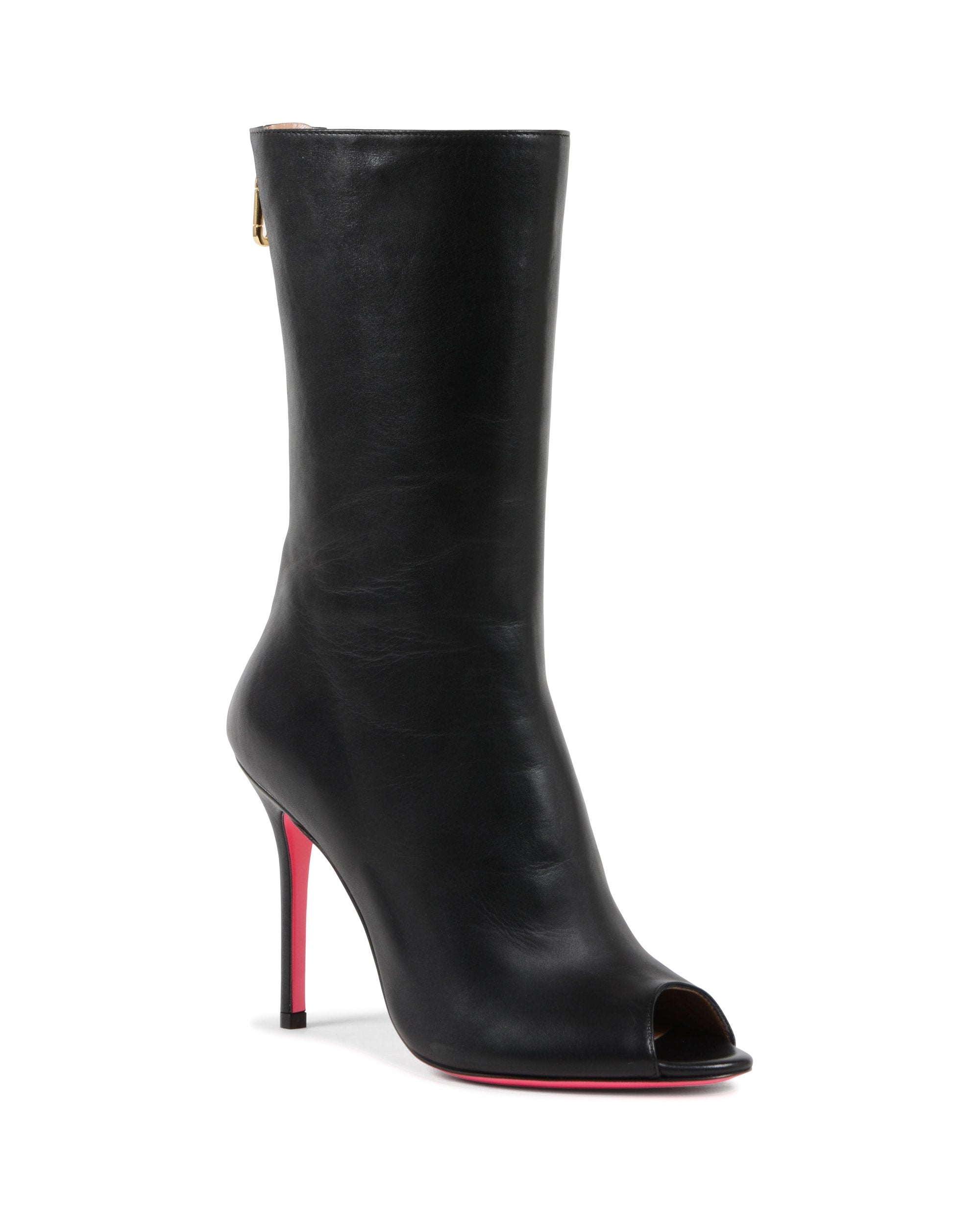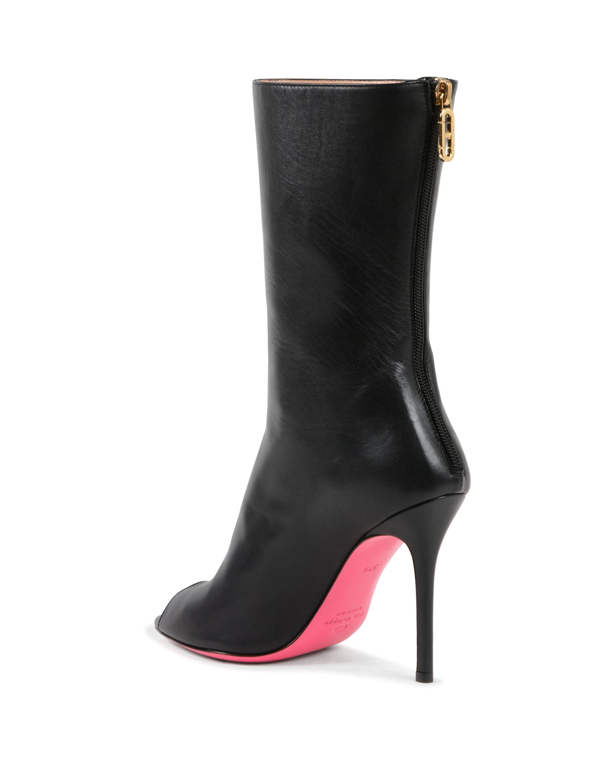 Las botas cortas Dee Mug son una opción de calzado elegante que agregará un toque de elegancia moderna a cualquier look. Fabricado en Italia por algunos de los mejores artesanos del país, este destalonado está hecho 100% de cuero, tiene la puntera abierta y un tacón de 10,5 cm.