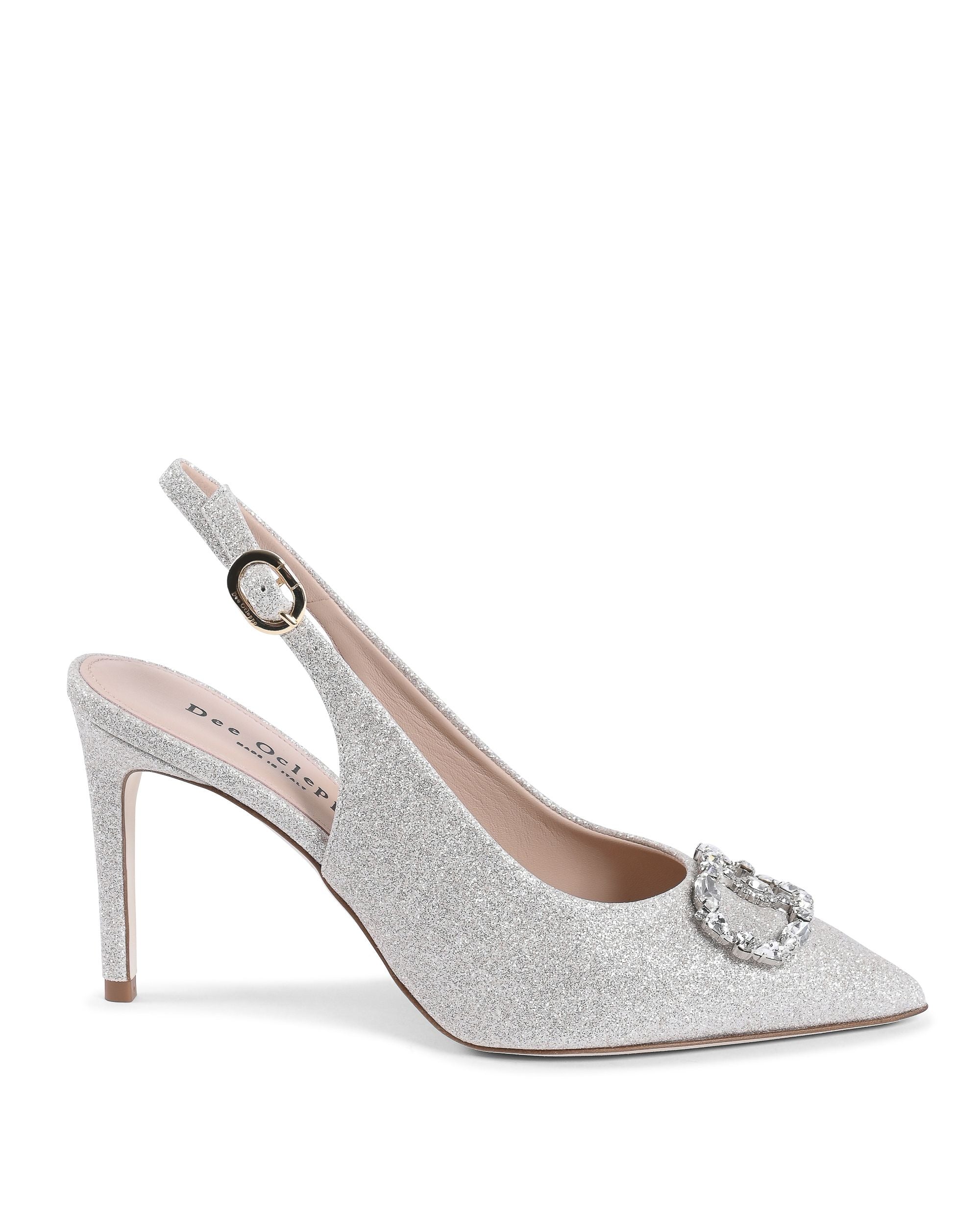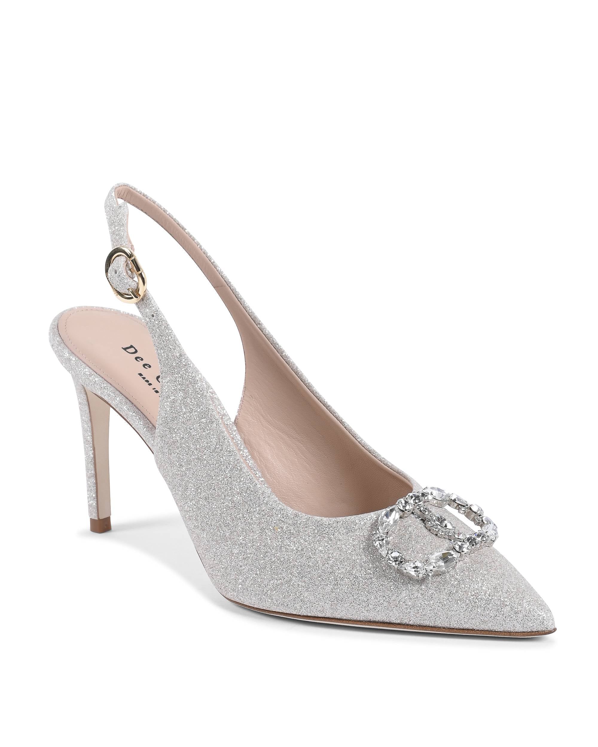 Estos zapatos Slinky son perfectos para usar en una noche especial. Hecho en Italia por algunos de los mejores artesanos del país, este slingback está hecho 100% de cuero y tela, presenta una puntera en punta, un tacón de 8 cm y el nuevo logotipo icónico de Dee.