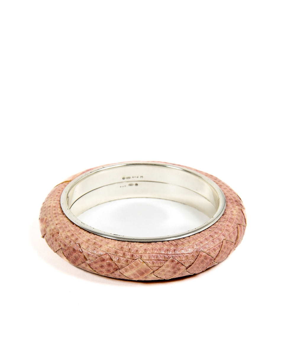 Par : Bottega Veneta - Détail : 130219 VBGG2 6214 - Couleur : Rose - Composition : 50% ARGENT + 50% CUIR DE SERPENT - Mesures : - Fabrication : ITALIE