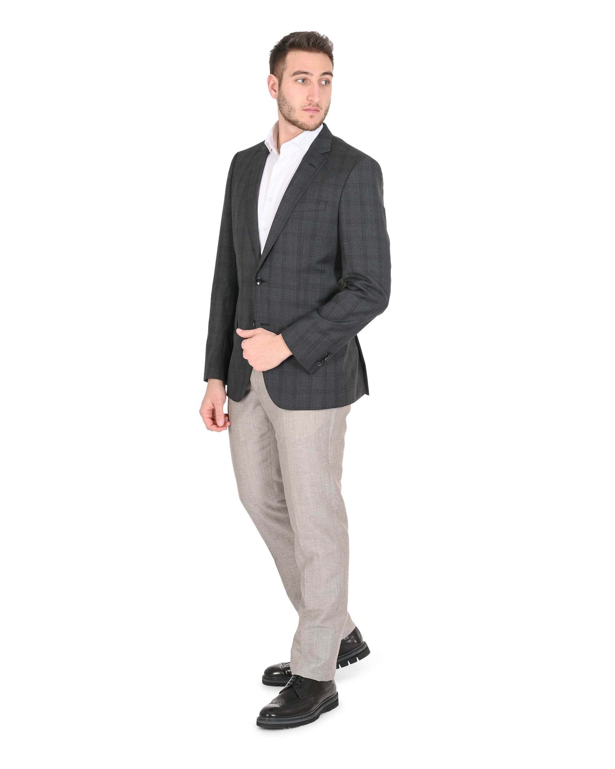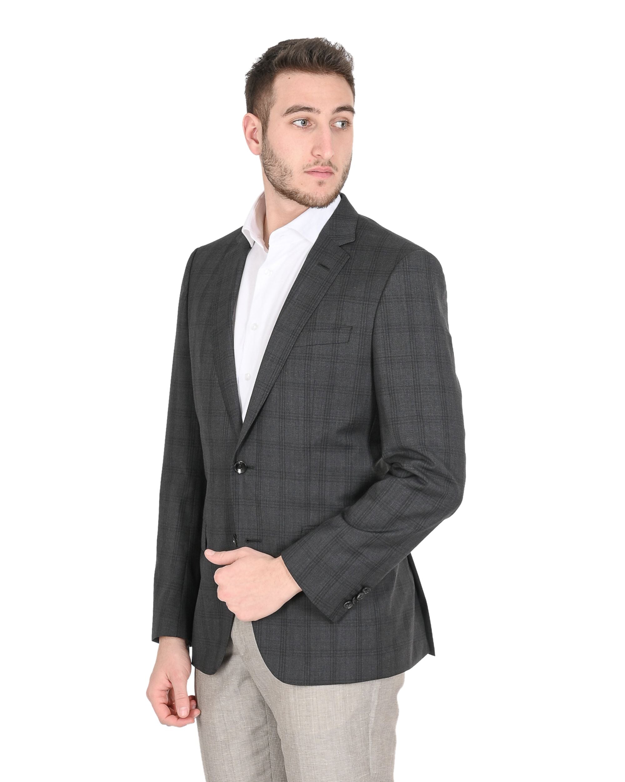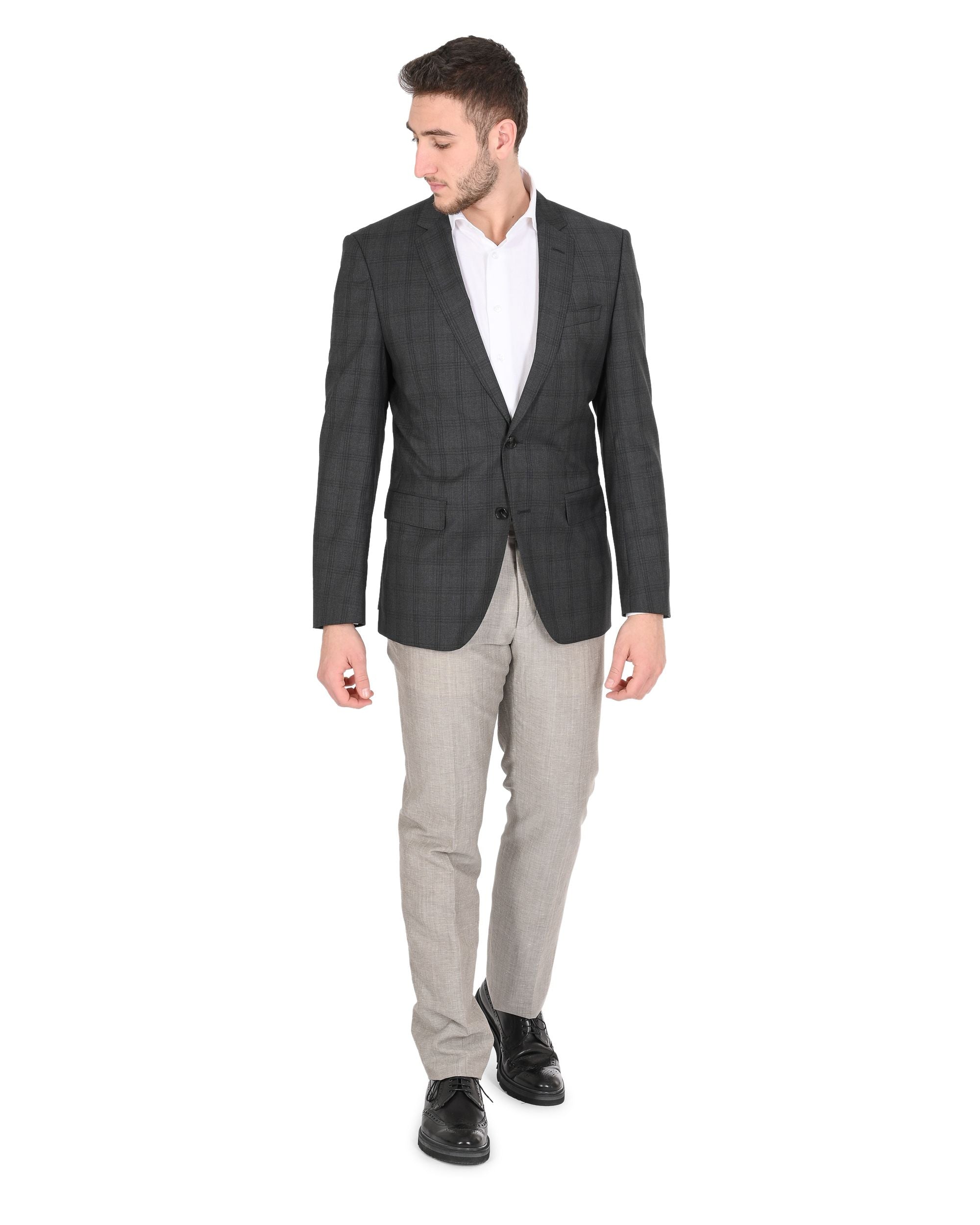 Par : Hugo Boss - Détail : 50417614 061 - Couleur : Gris foncé - Composition : 100% LAINE VIERGE - Mensurations : - Fabrication : BULGARIE