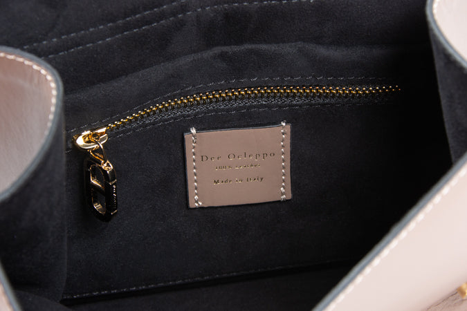 | Rehaussant le look de notre sac à bandoulière signature, le Dee Perugia est doté d’une poignée en fourrure synthétique ludique et durable. Le cuir 100 % italien beige, l’intérieur spacieux et la bandoulière amovible font de ce sac un ajout polyvalent à votre garde-robe.