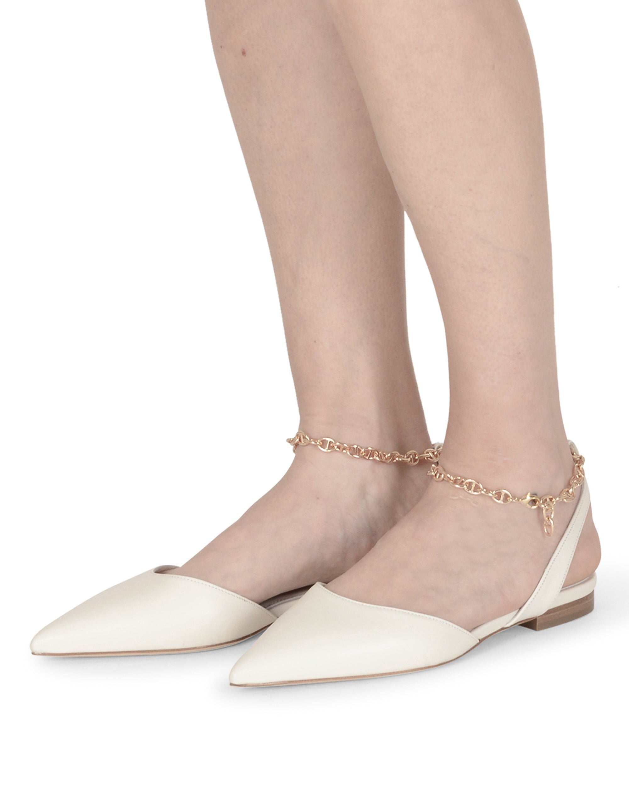 Cette chaussure plate ornée d’une chaîne dorée à la cheville est parfaite pour une journée de travail glamour. Il est fabriqué par les meilleurs artisans italiens. 100% Fabriqué en Italie